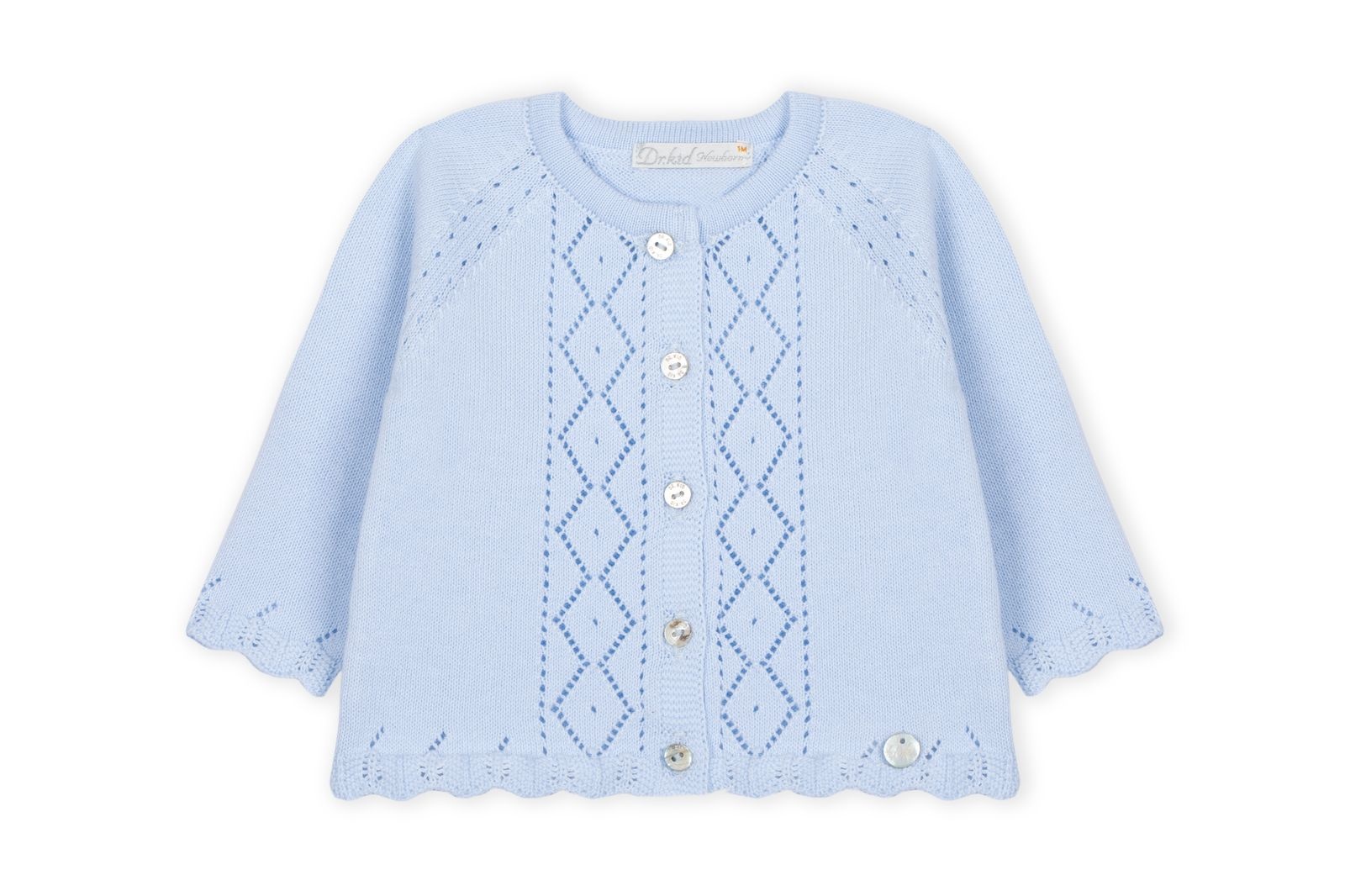 • Light blue knit cardigan.