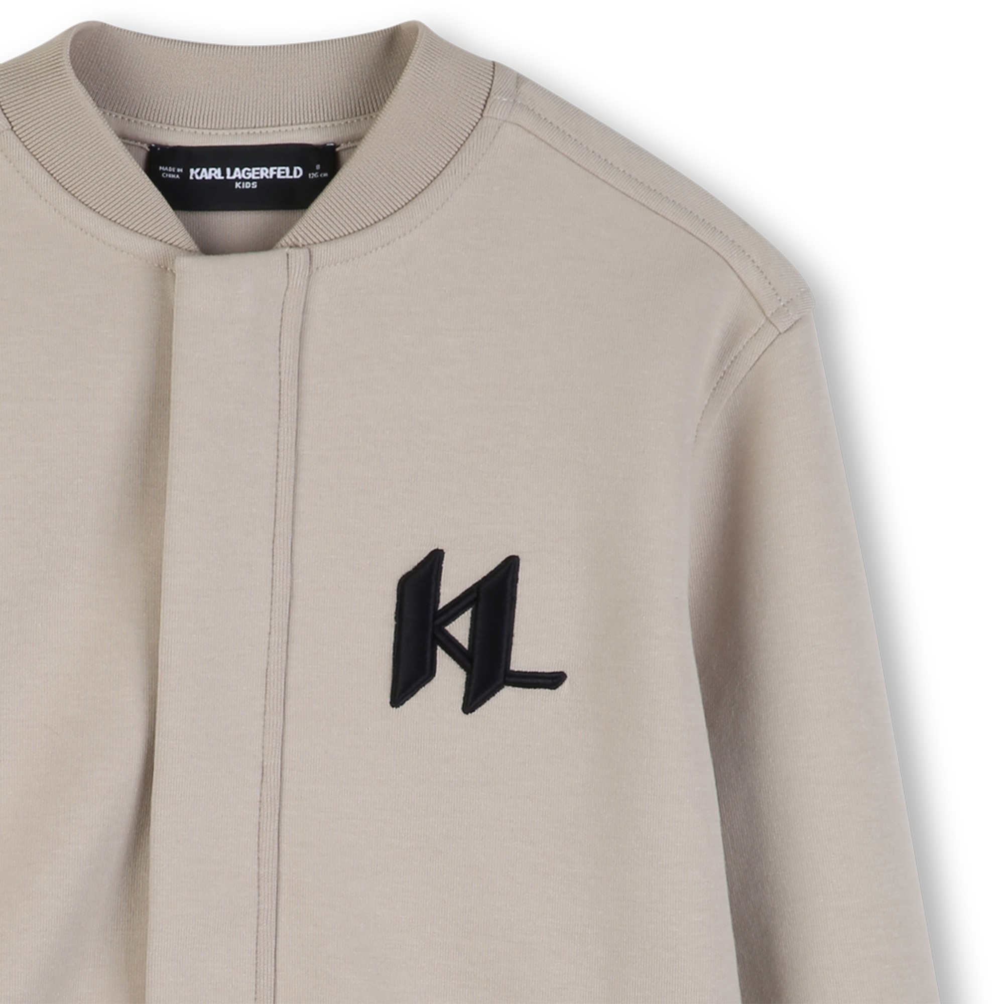 • Beige cardigan with zip and snap closure. Pockets and black logo on the front.