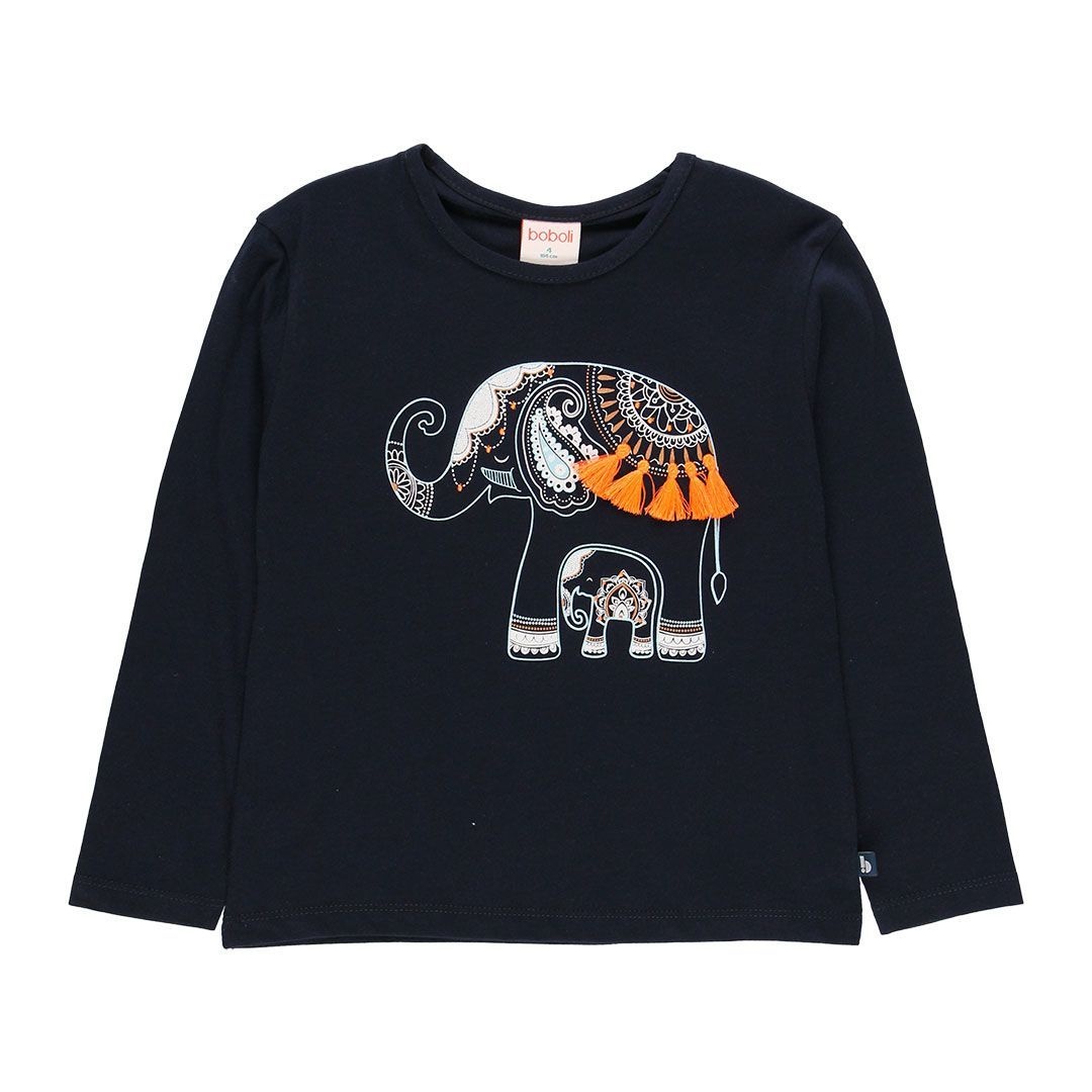 • Navy blue long-sleeved printed t-shirt.