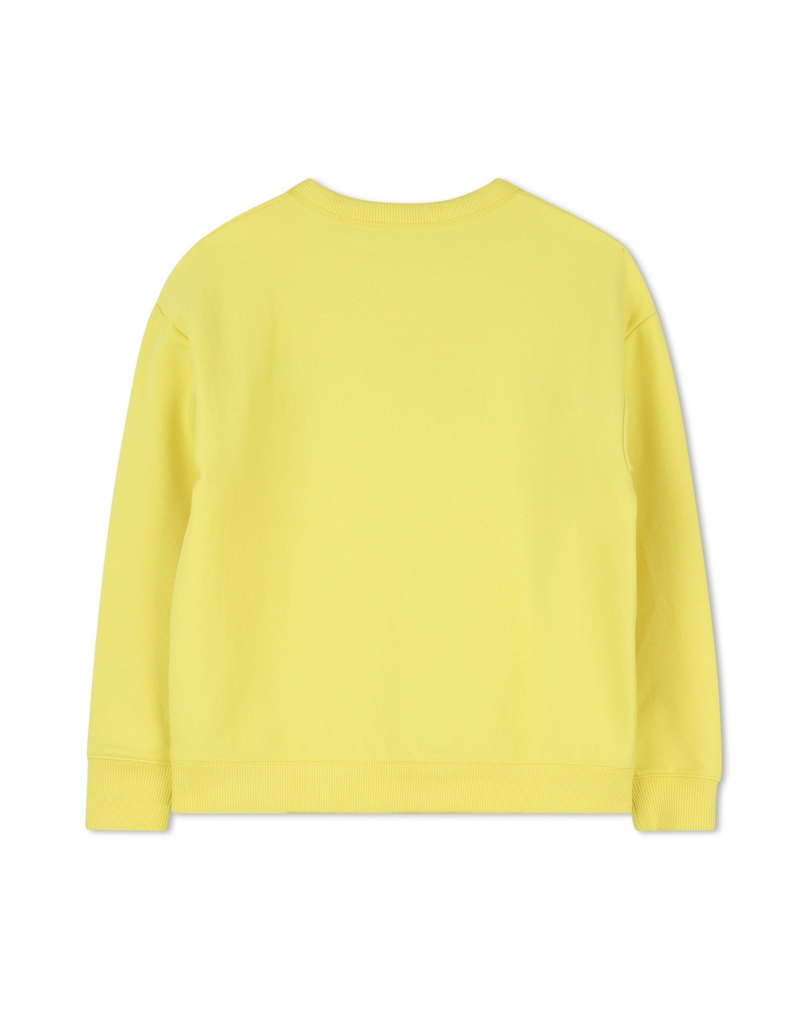 • Yellow long-sleeved sweater with embossed logo on the front.