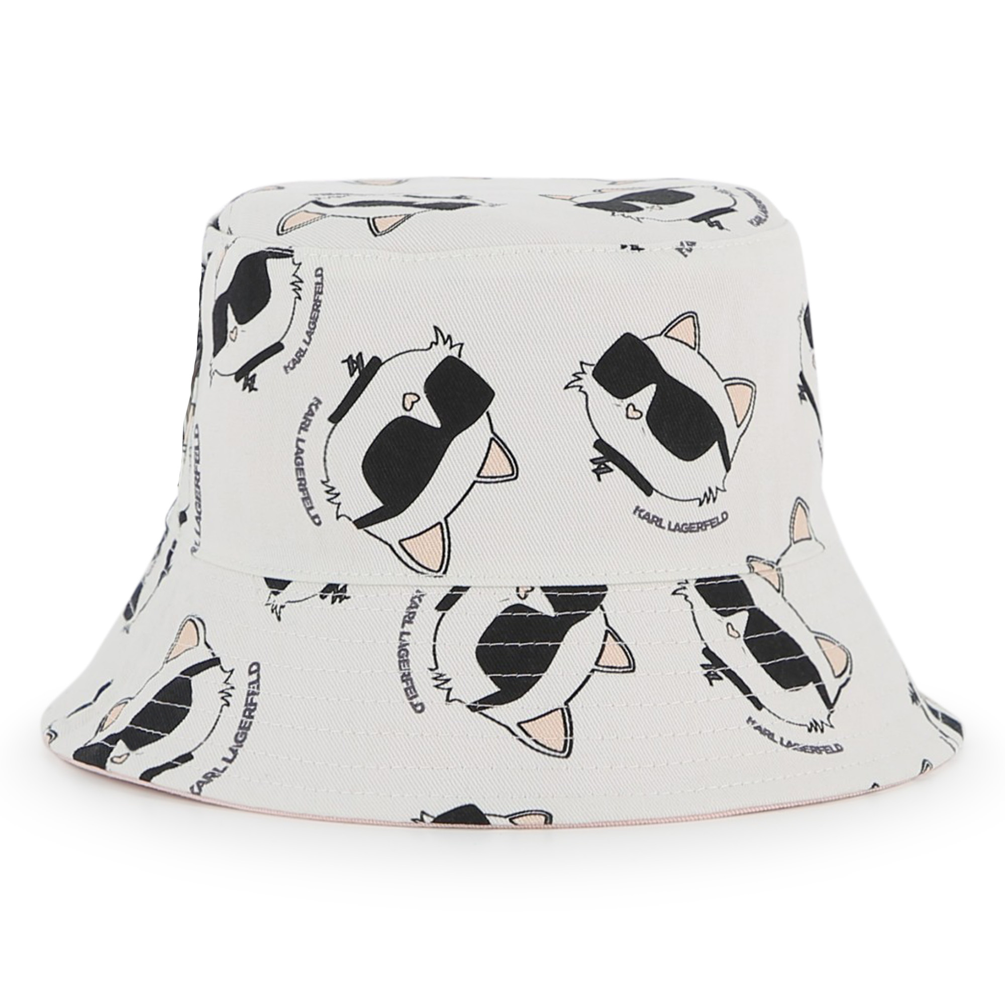 • Reversible pink and white hat with classic white kitten logo print.