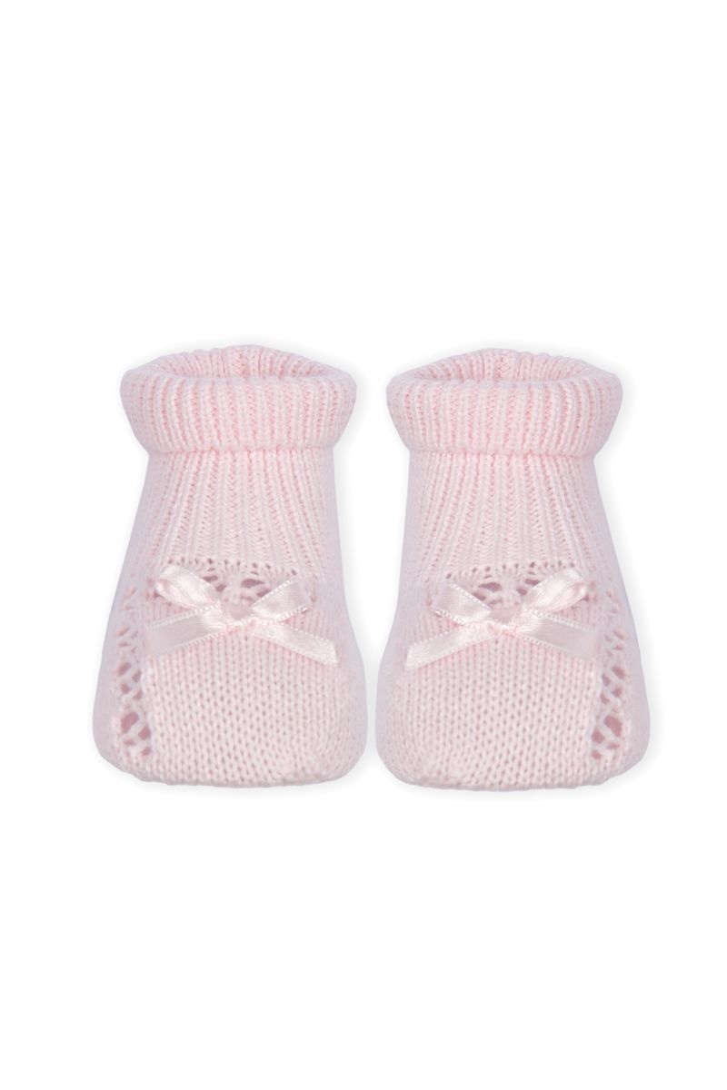 • Pink knit slippers.