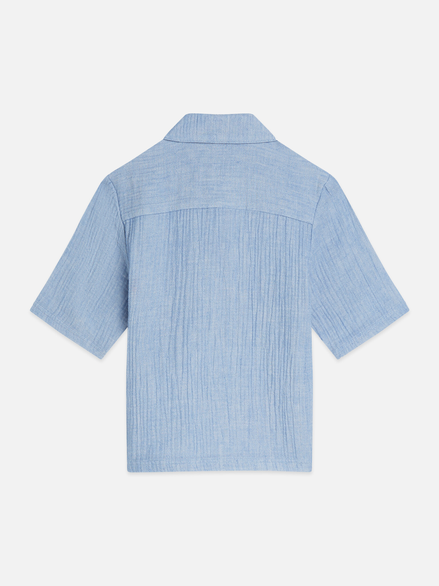 • Short-sleeved blue shirt with a small front pocket