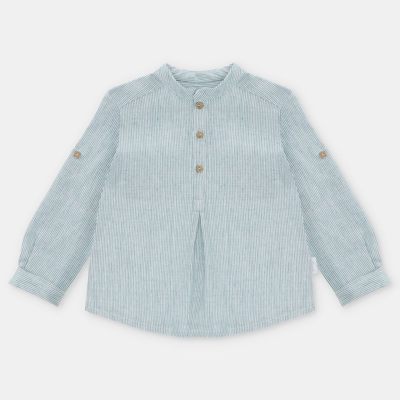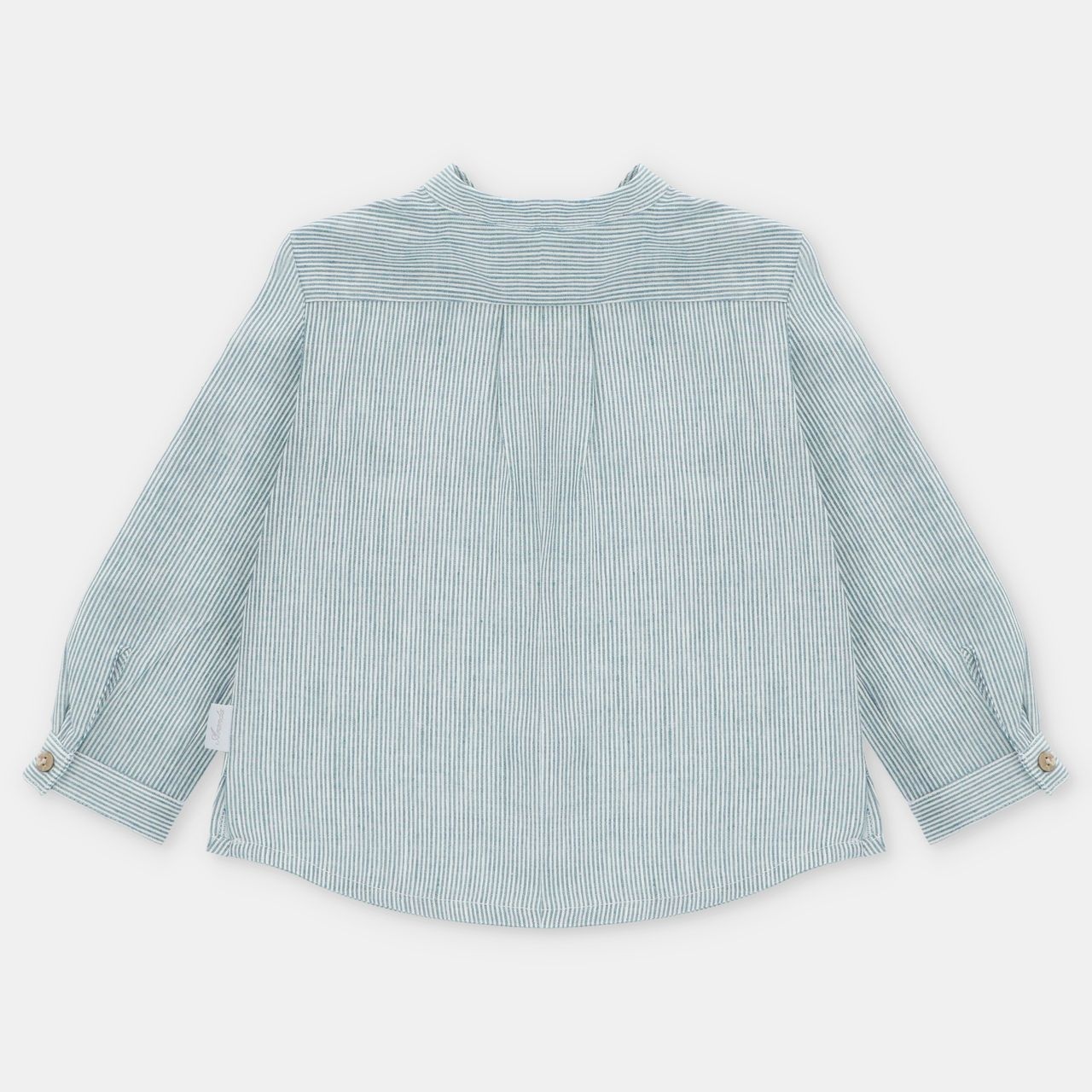 • Blue striped long-sleeved shirt.