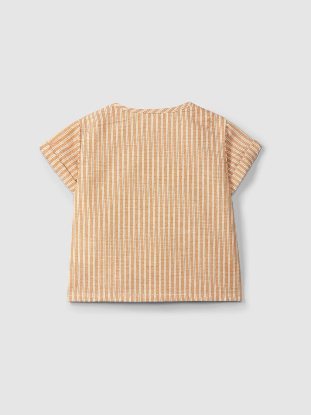 • Short-sleeved striped shirt in cream and ochre.