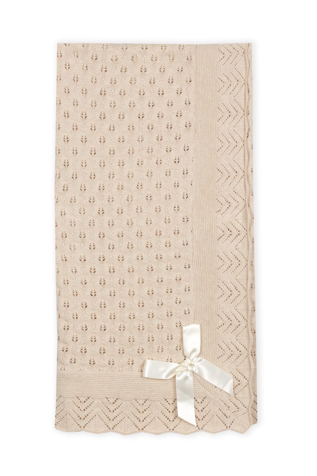 • Beige knit blanket.