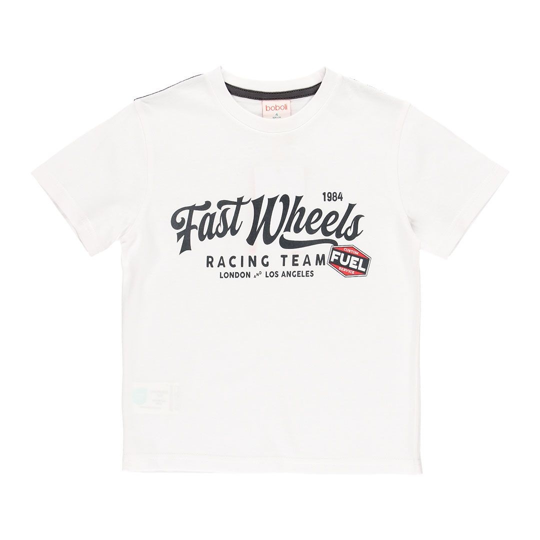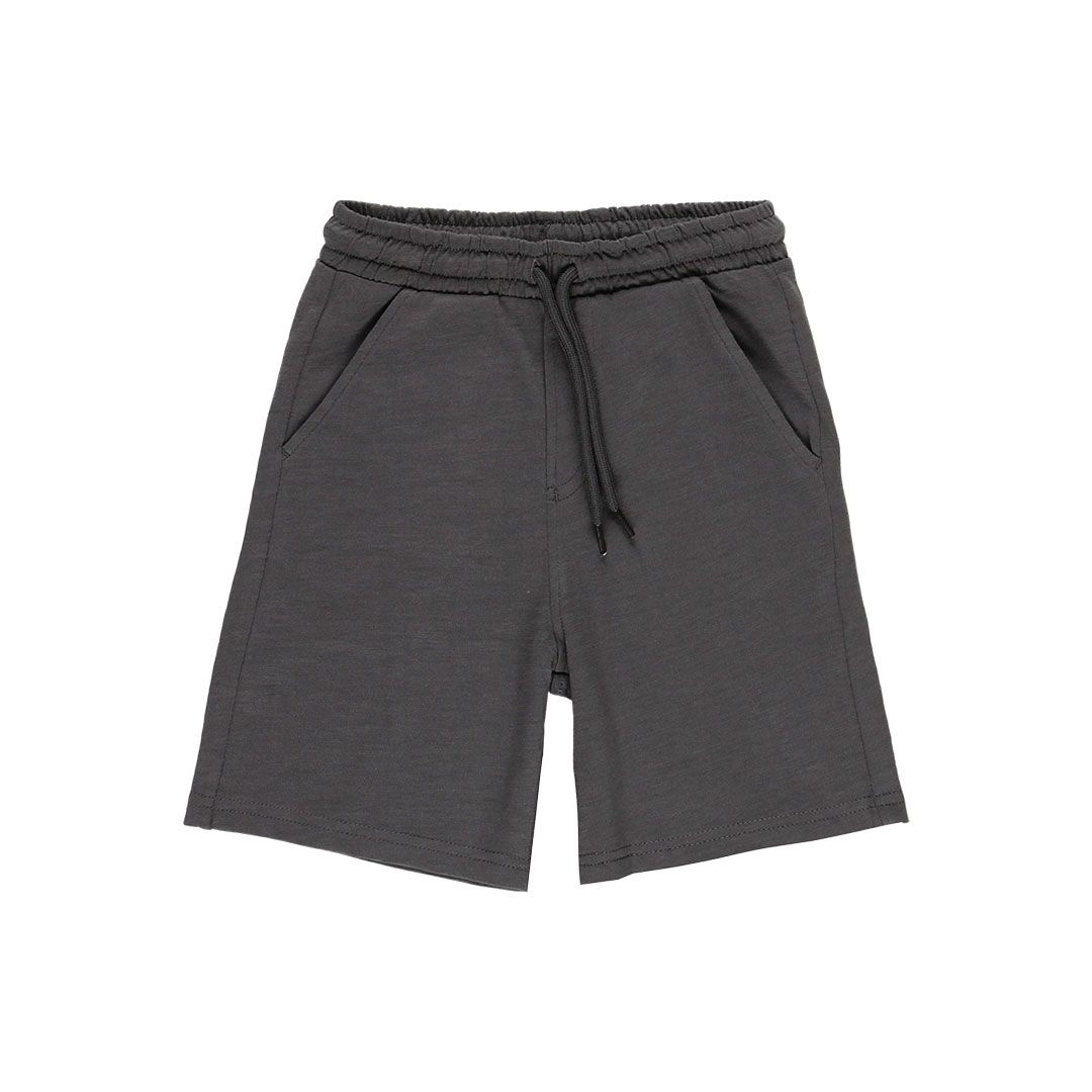 • Two-piece set including a short-sleeved white top and charcoal-colored shorts with an elasticated waistband.
