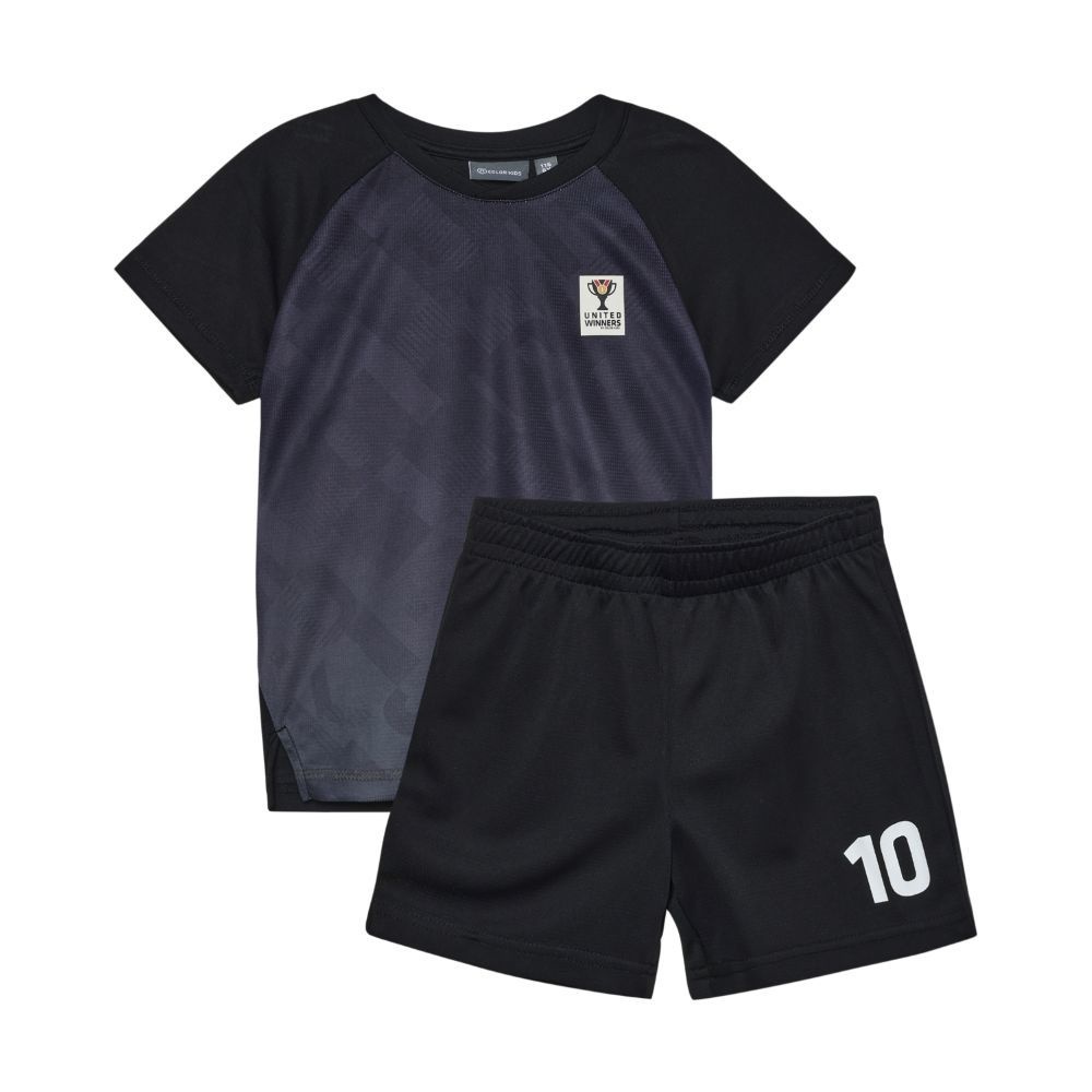 • 2-piece black set including a t-shirt and shorts.