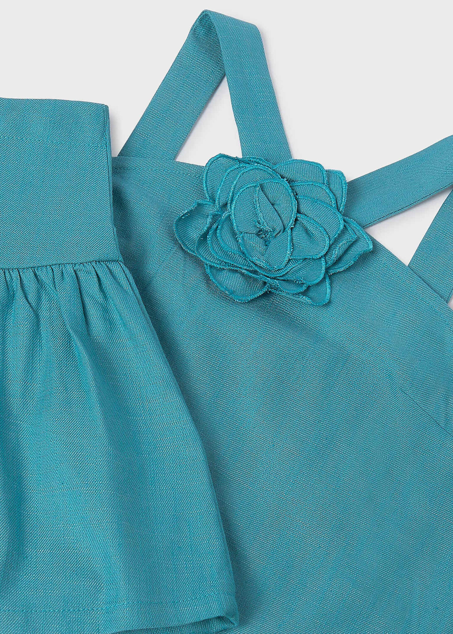 • 2-piece jade-colored set including a strappy top and elastic-waist shorts.