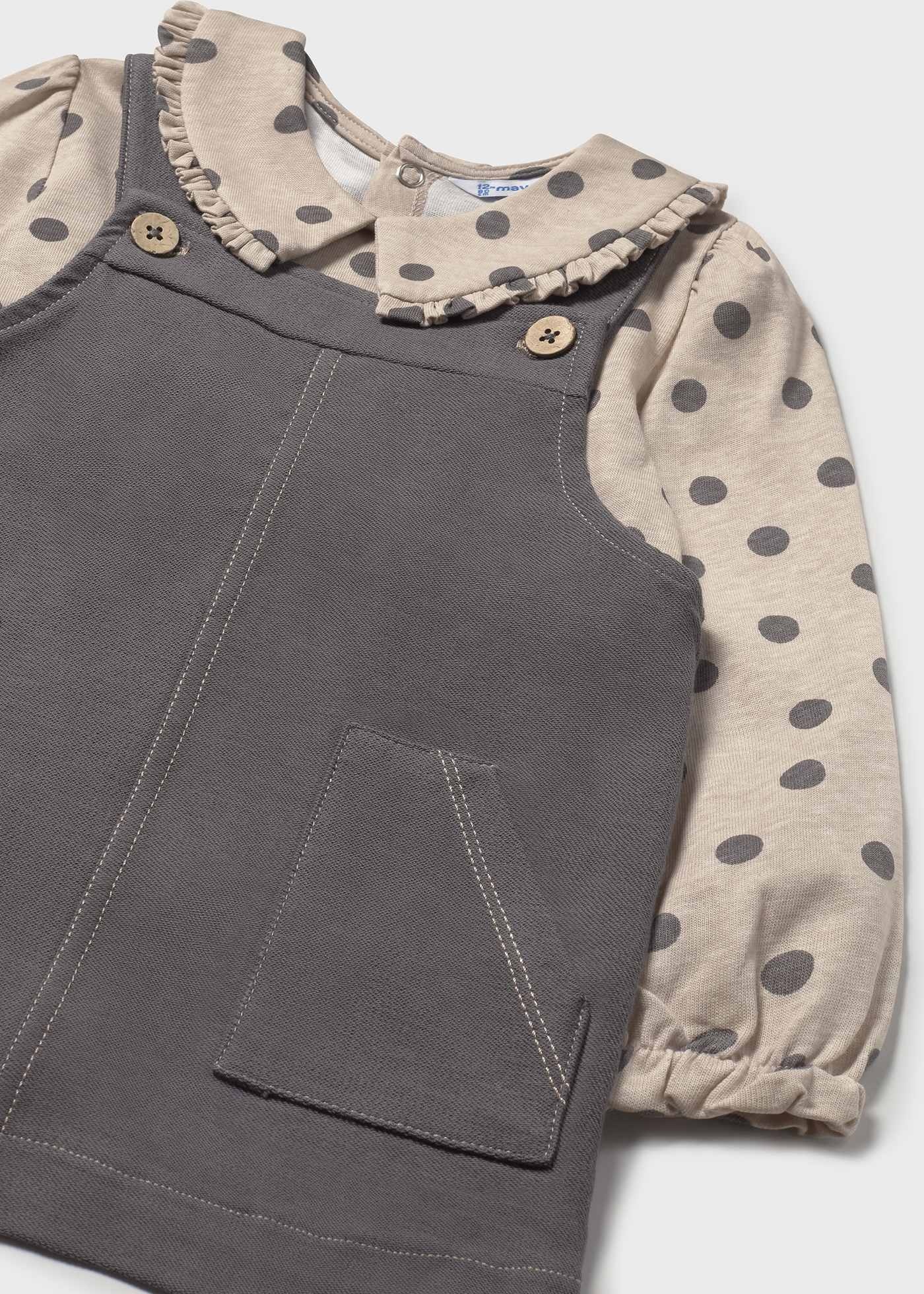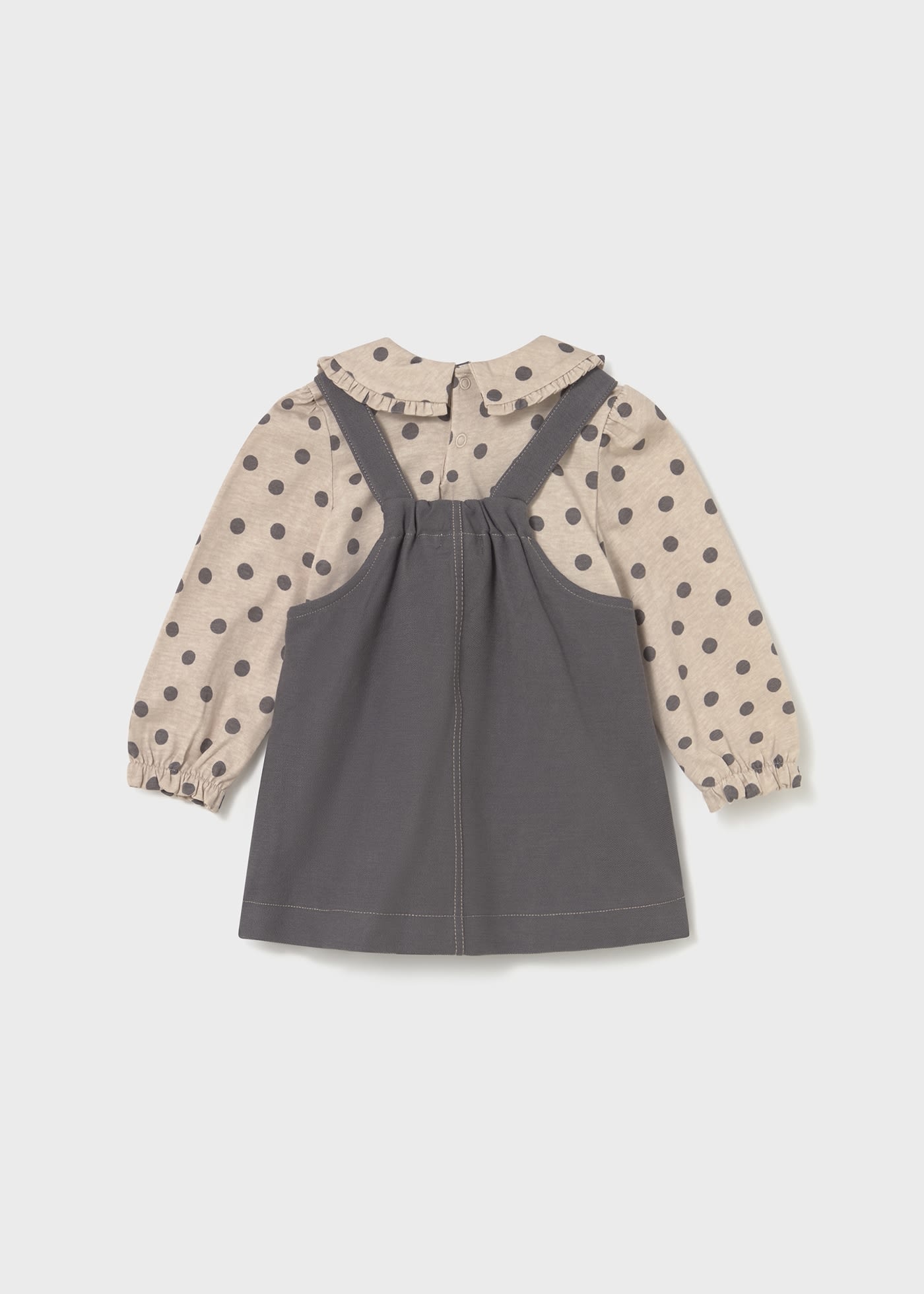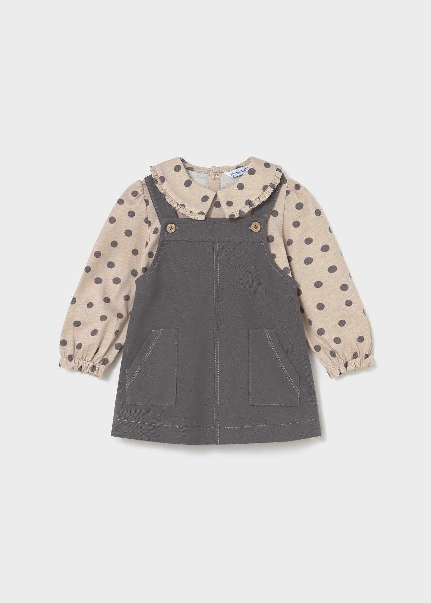 • 2-piece set including a beige long-sleeved top and a gray jumper.