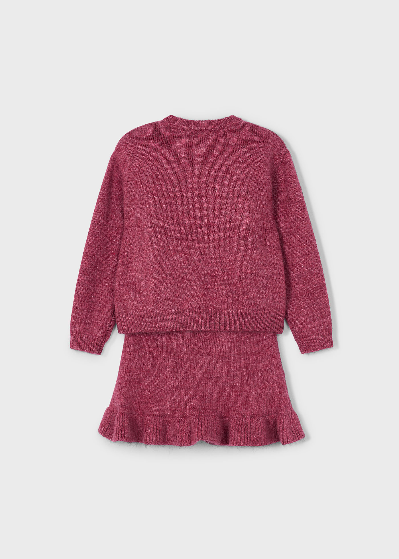 • 2-piece raspberry-colored knit set.