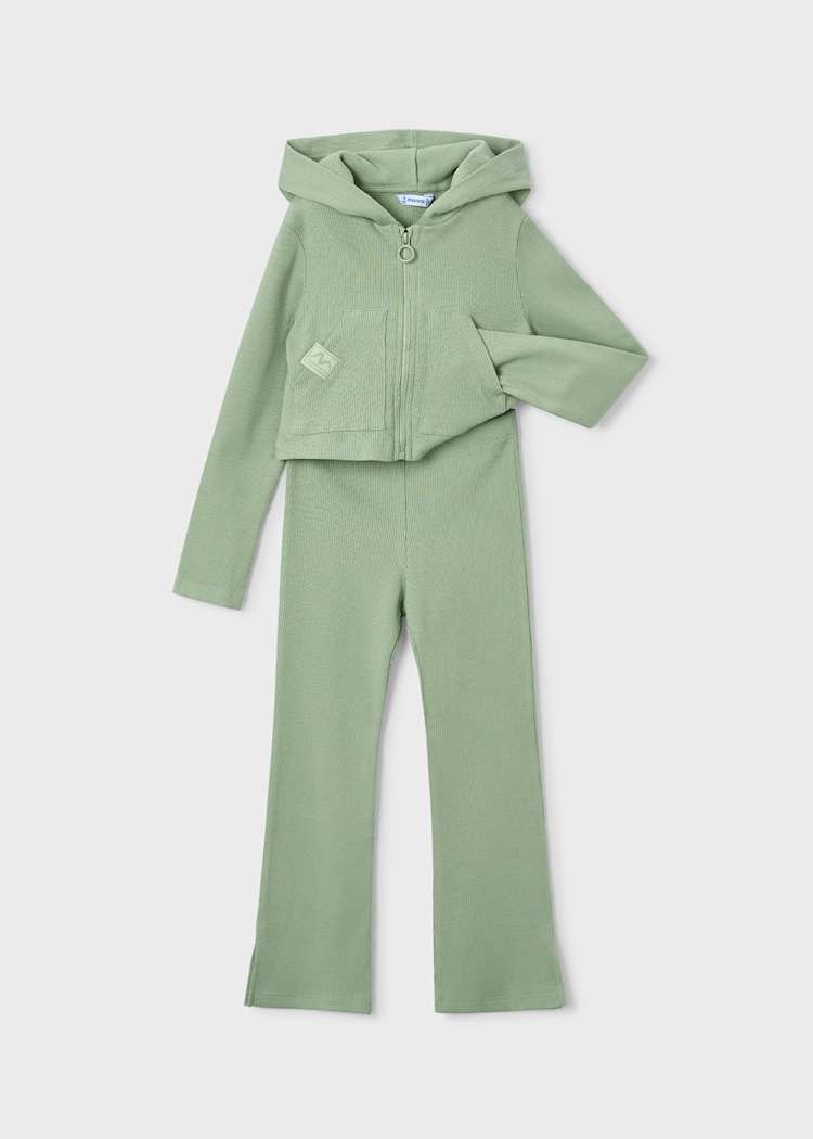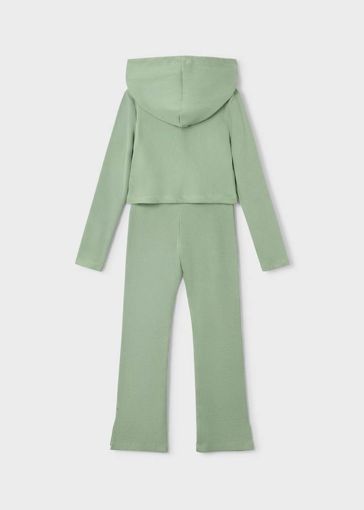 • 2-piece sage-colored set including a zippered vest and elastic-waisted pants.