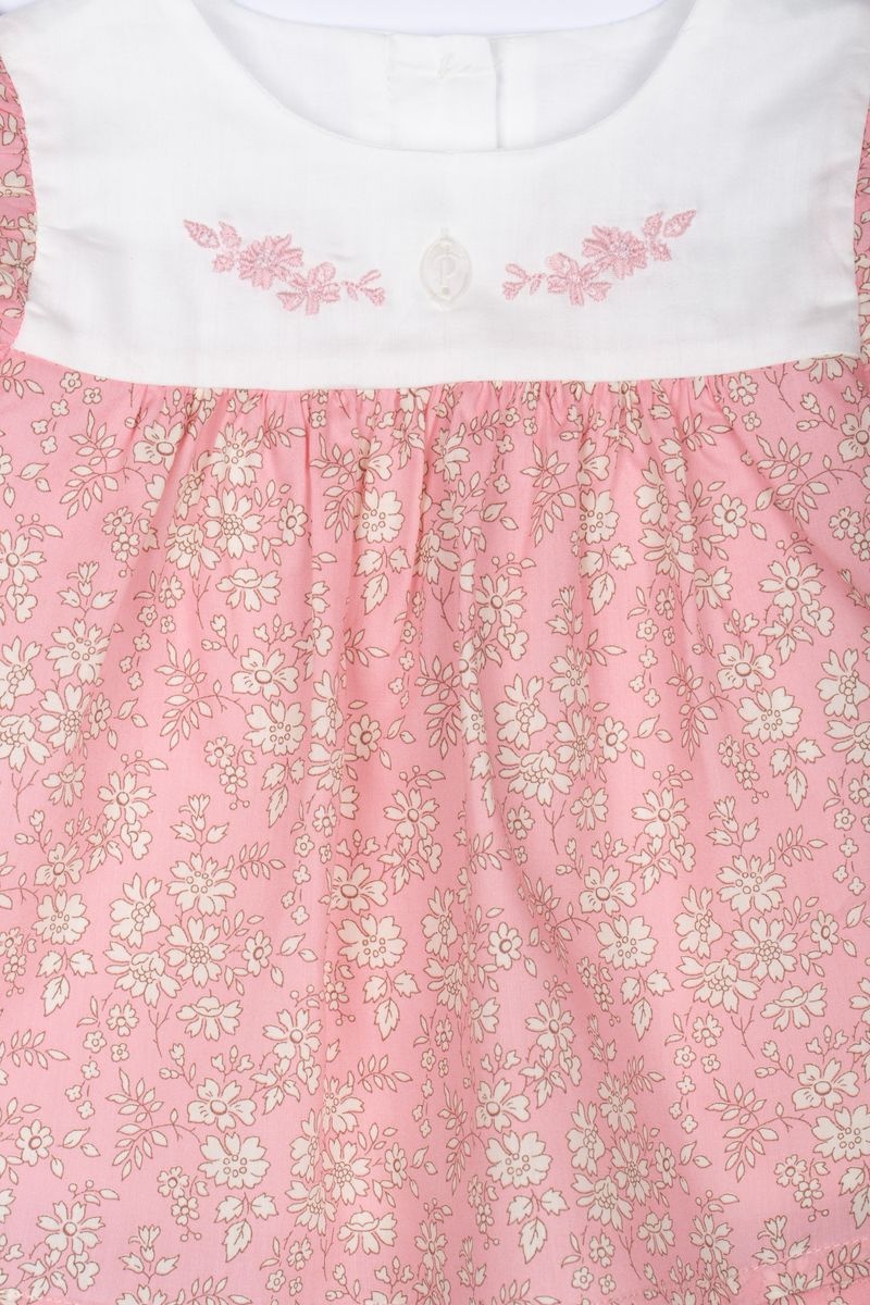 • Two-piece pink printed set including a button-back blouse and matching panties.