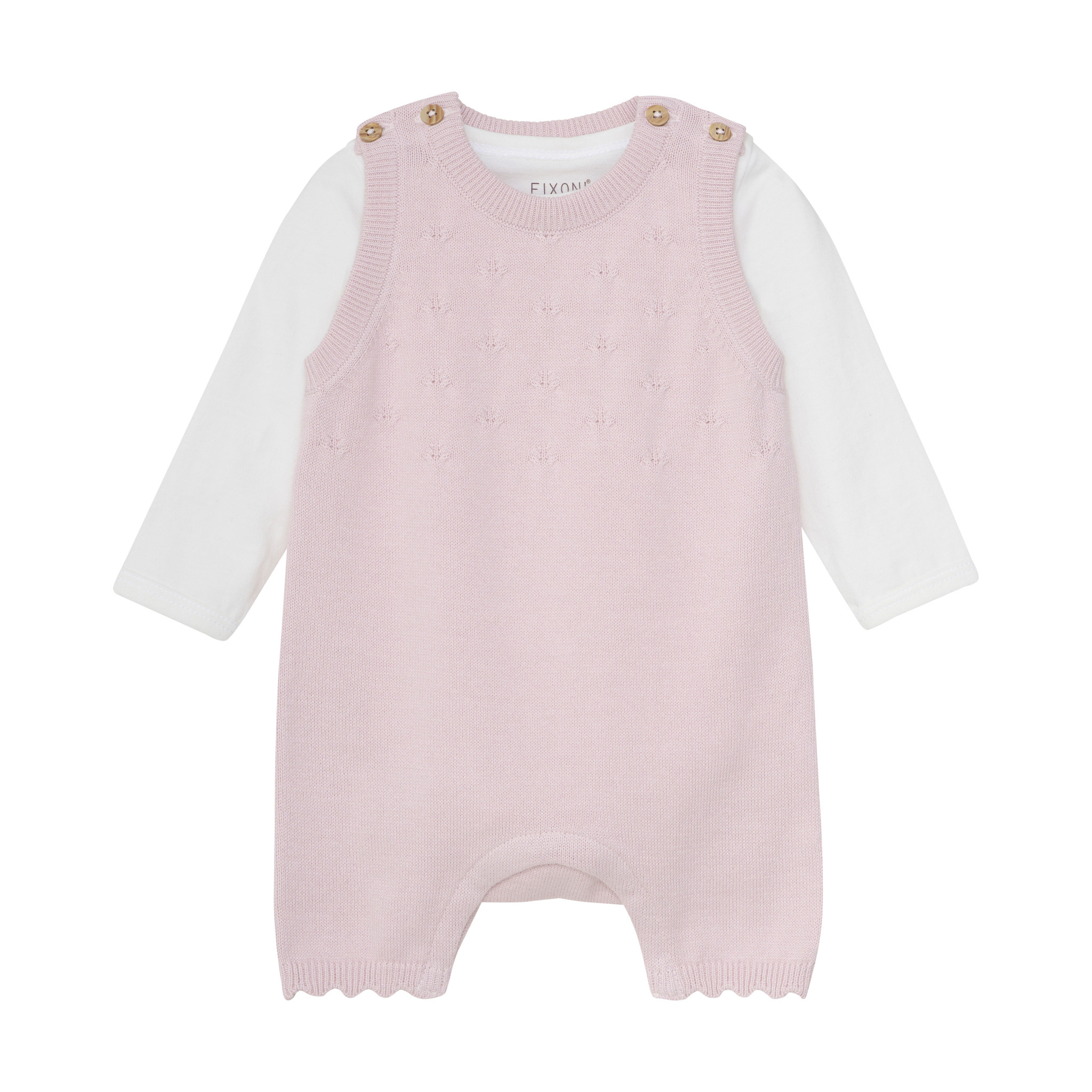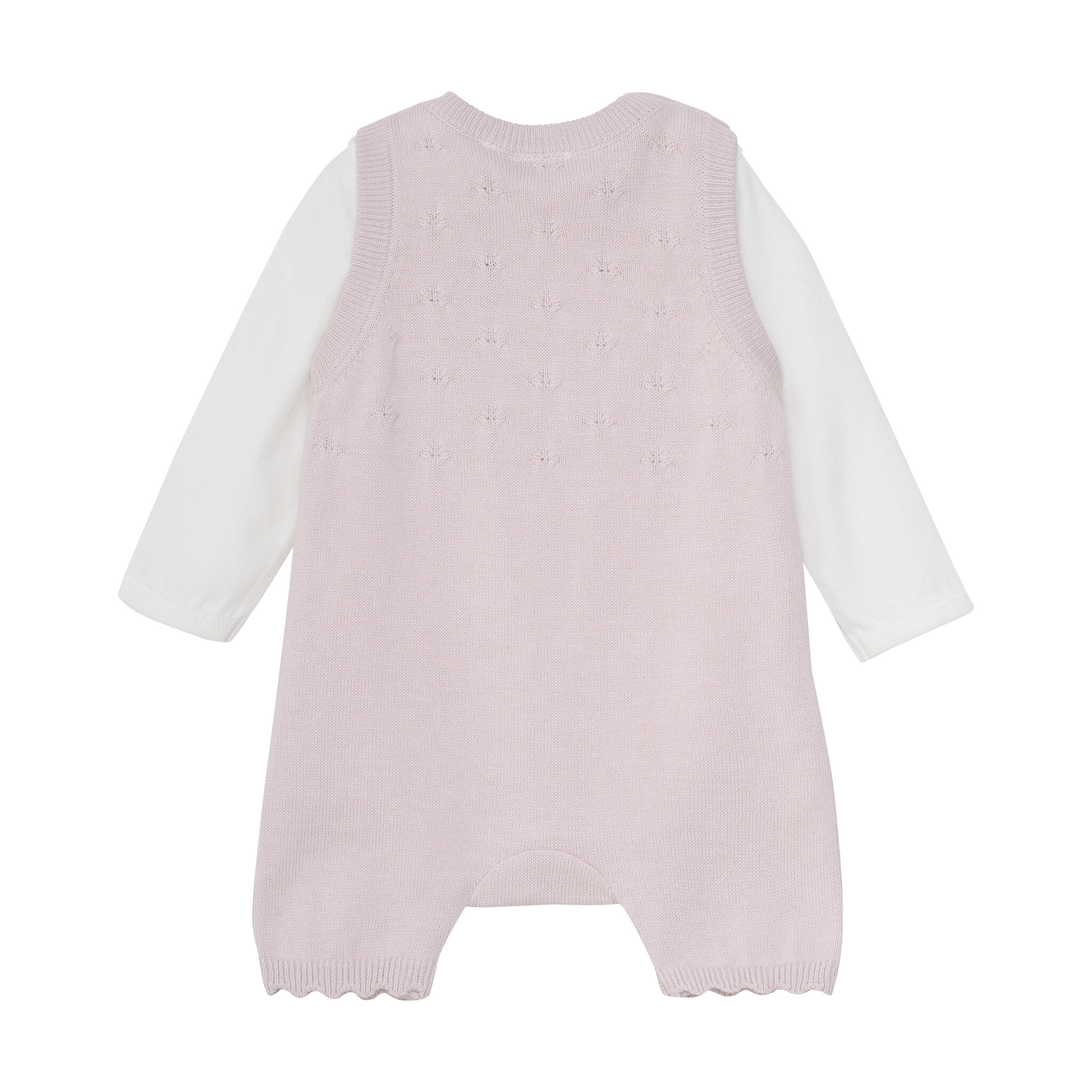 • 2-piece set including a pink romper with crotch snaps and an ivory body suit.