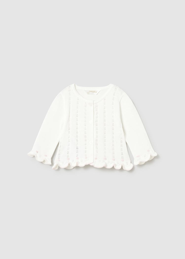• 3-piece cotton set including a knit cardigan, a long-sleeved top, and pants.