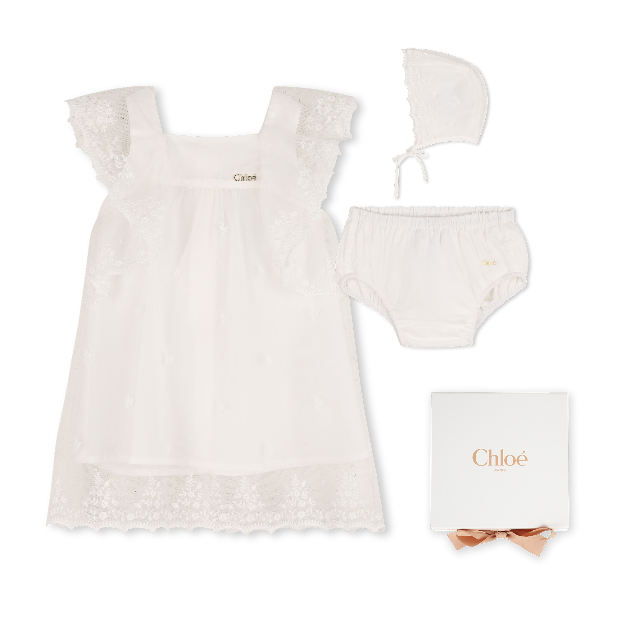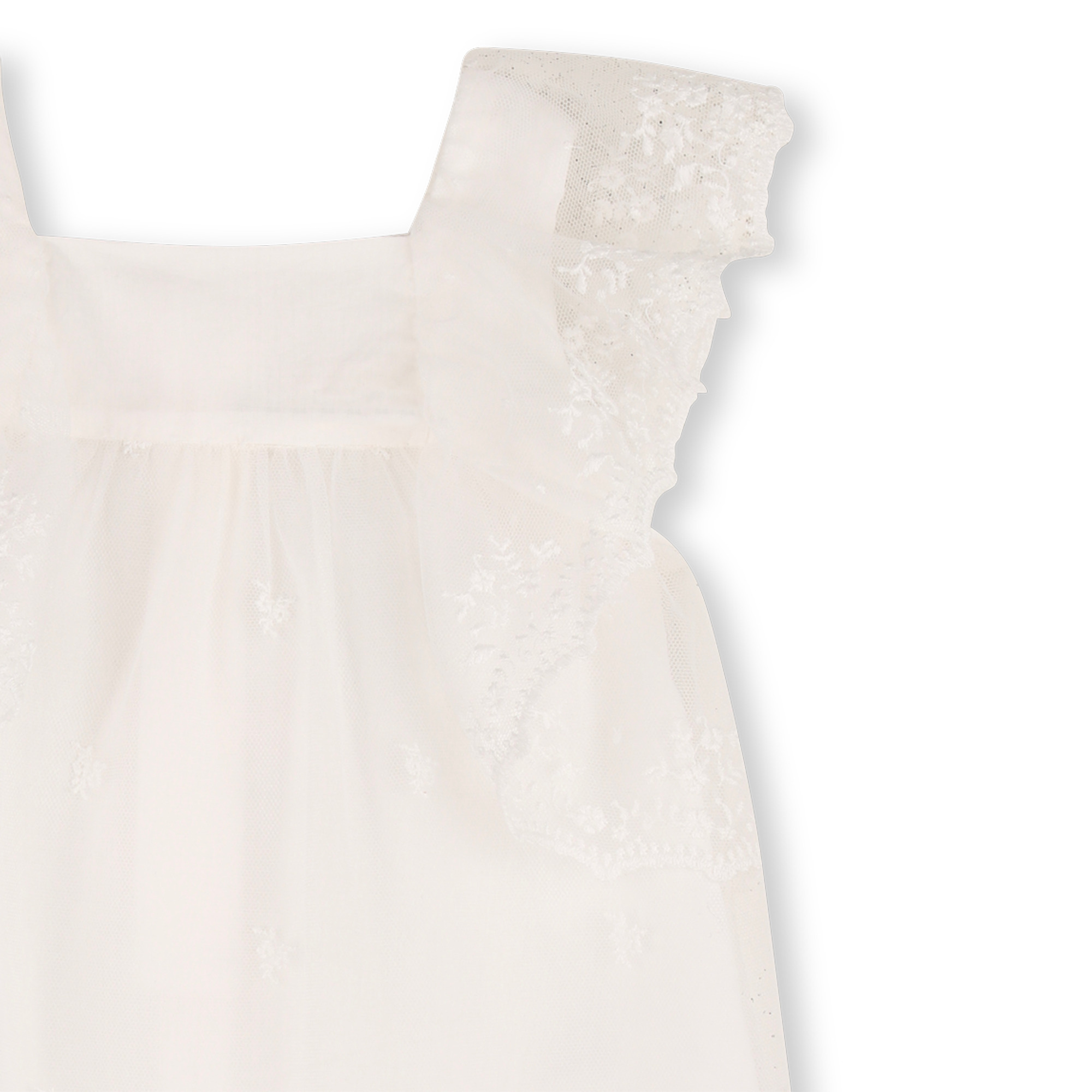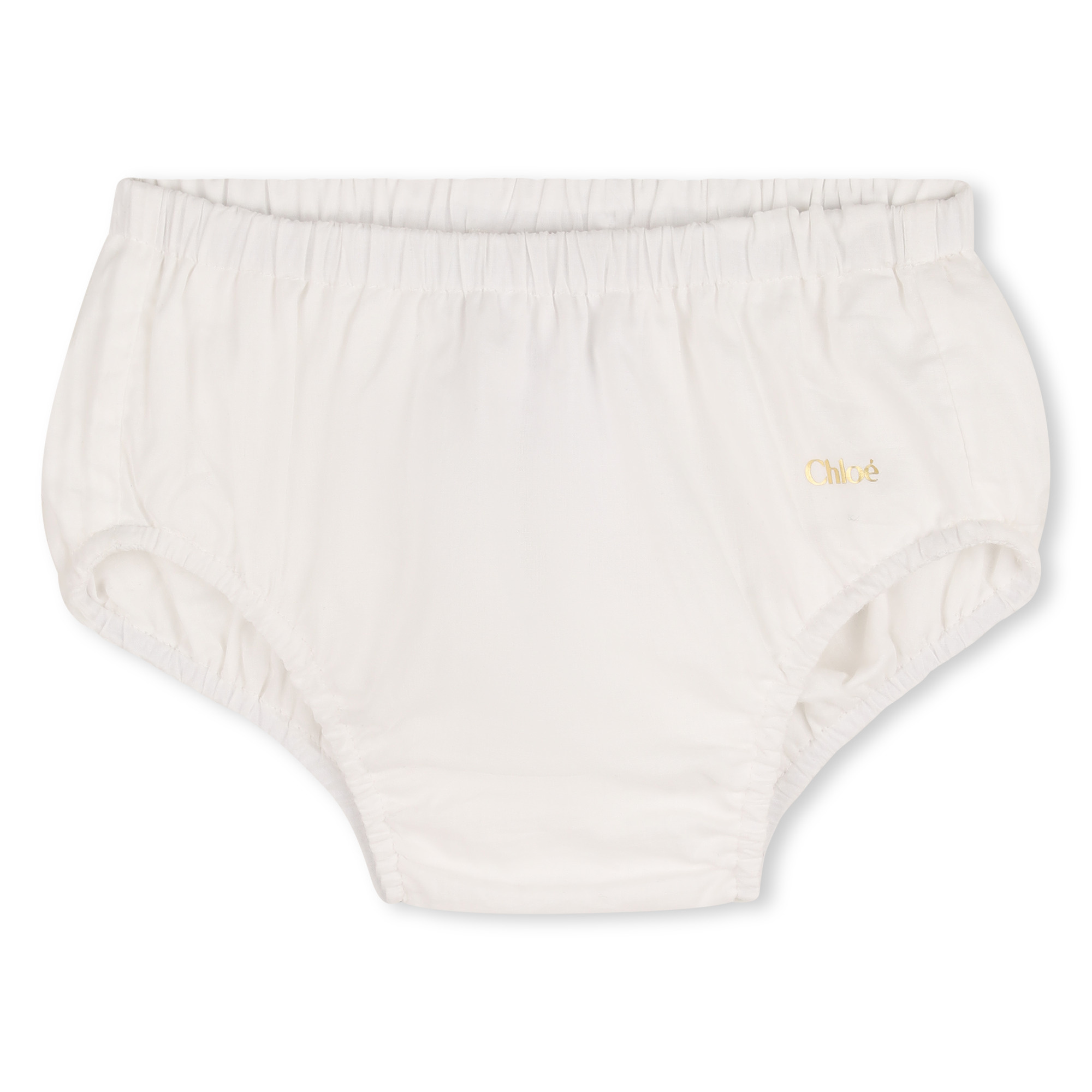 2-piece set including light pink t-shirt with woven floral details at the collar and baggy shorts with elasticated waist.