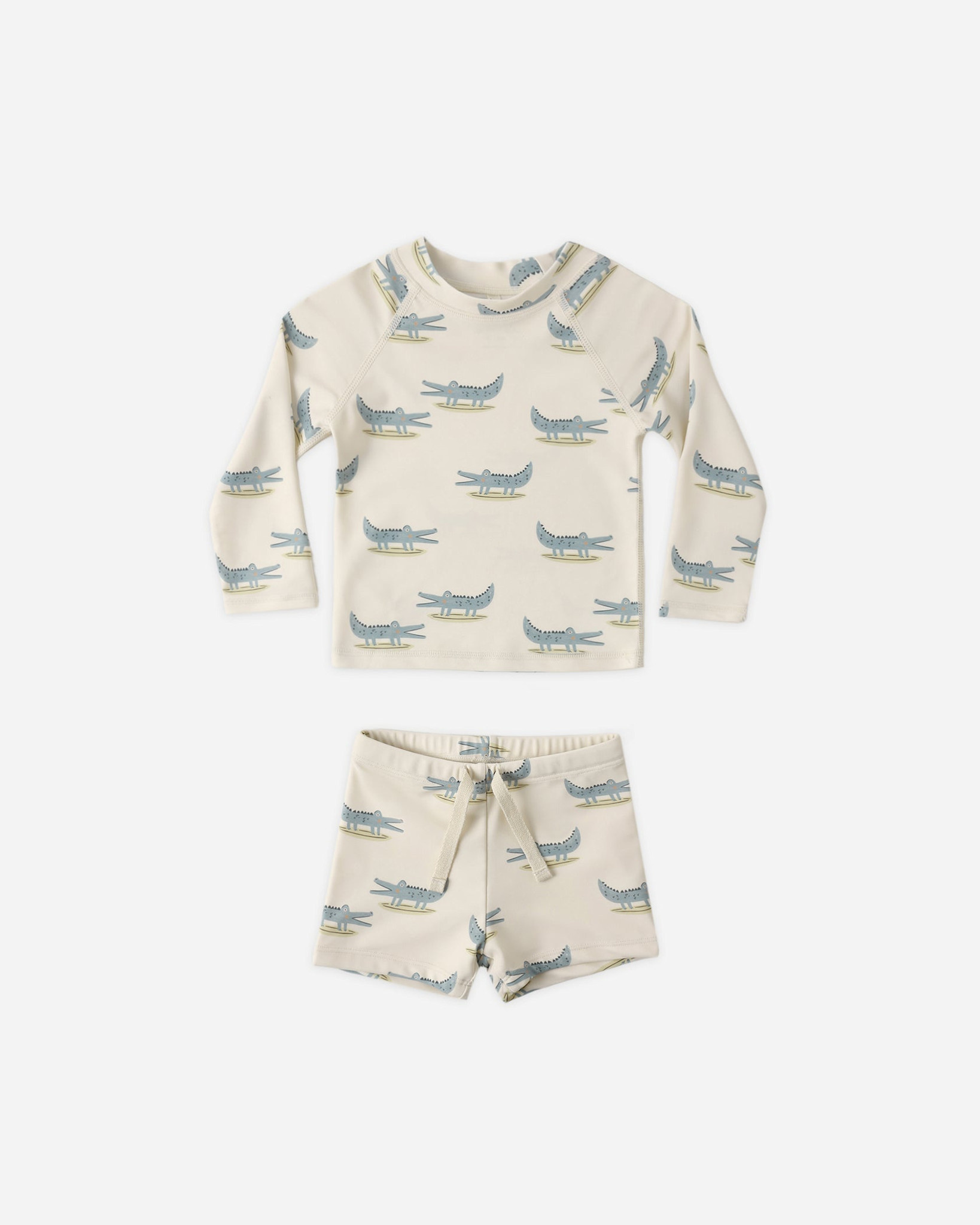 • 2-piece rashguard set including a long-sleeve top and bottoms.