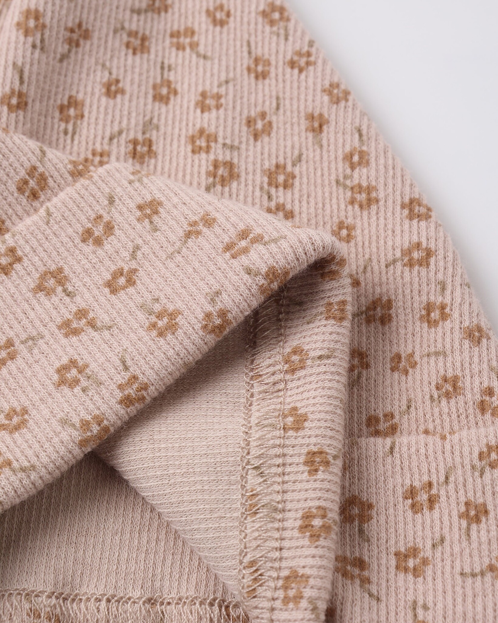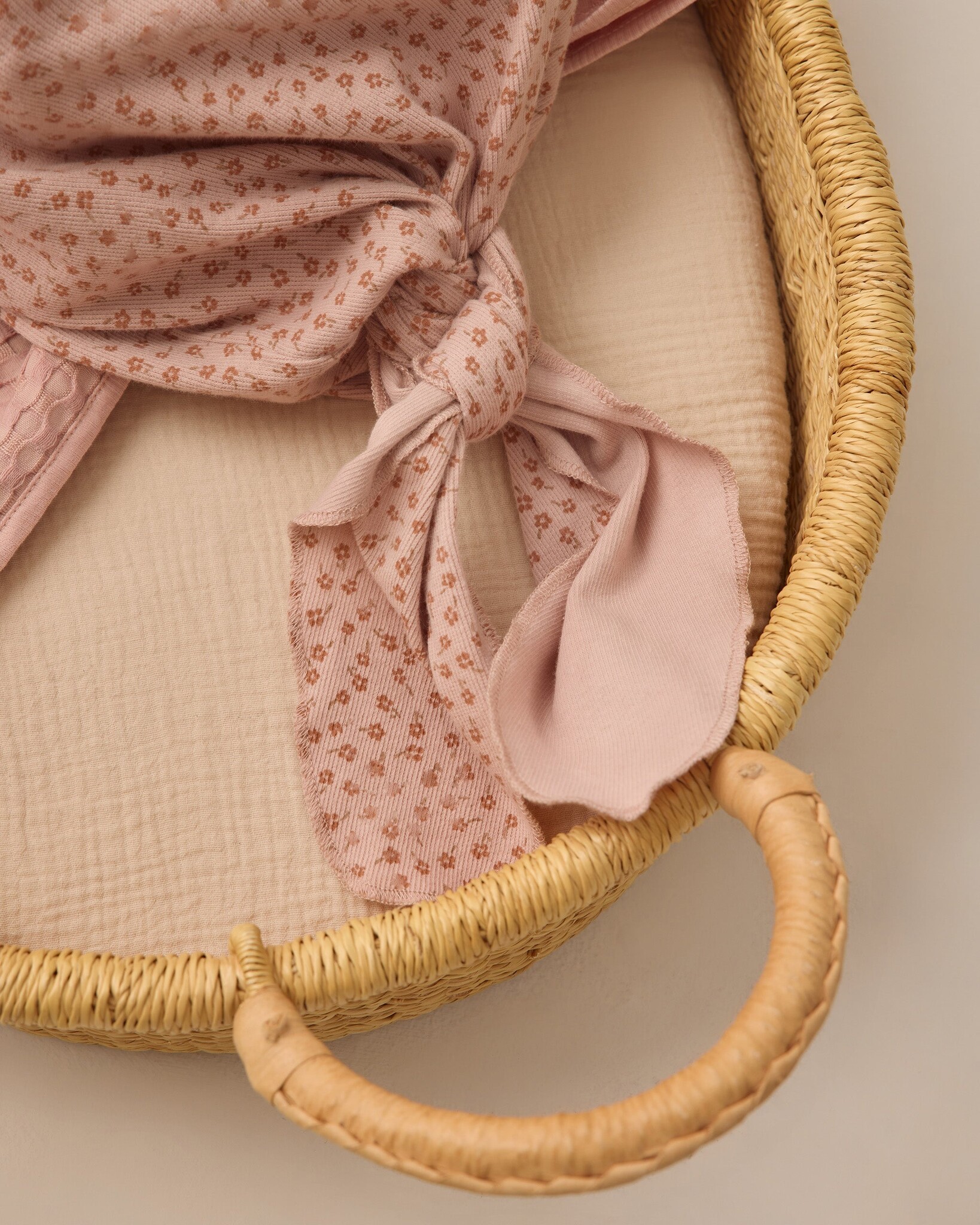 • Knotted baby gown designed with fold over hand mitts, paired with a knotted baby hat in a stretchy rib knit.