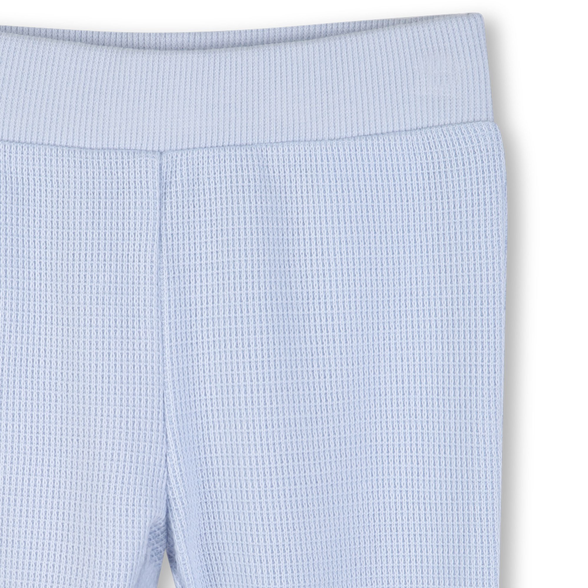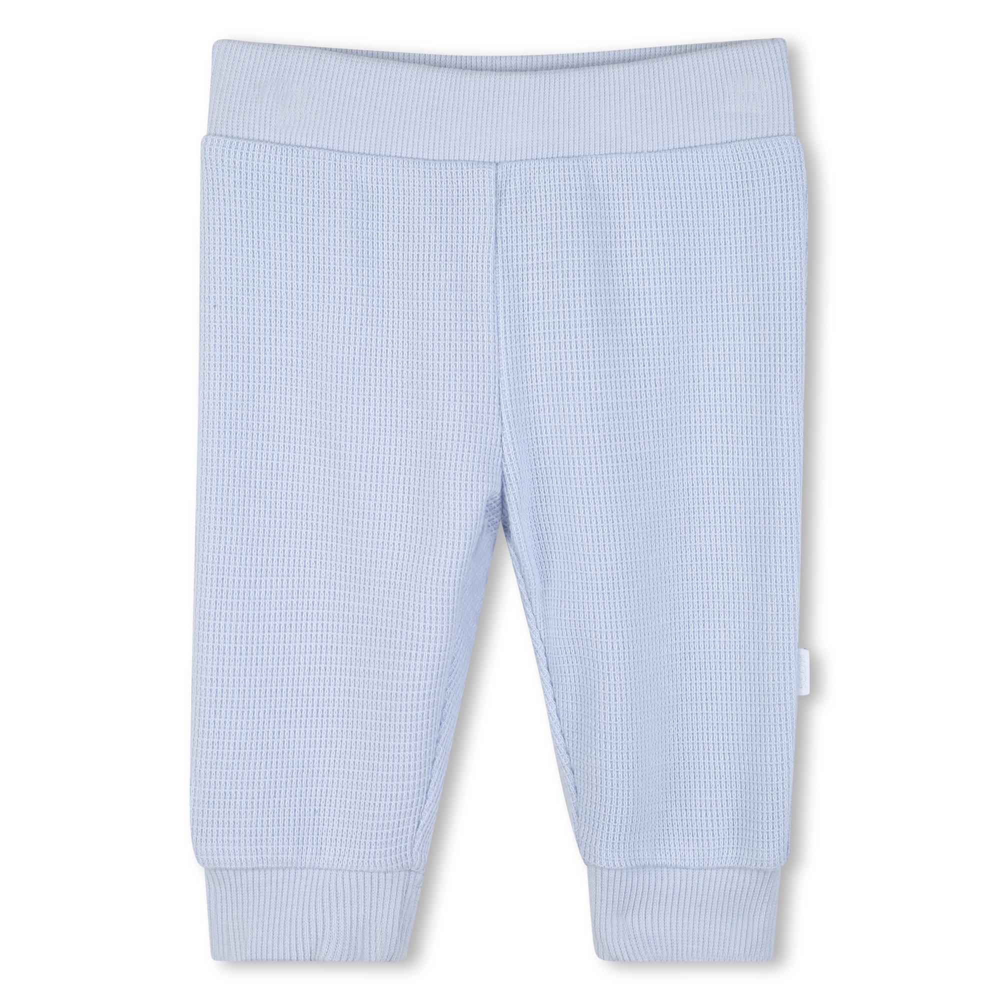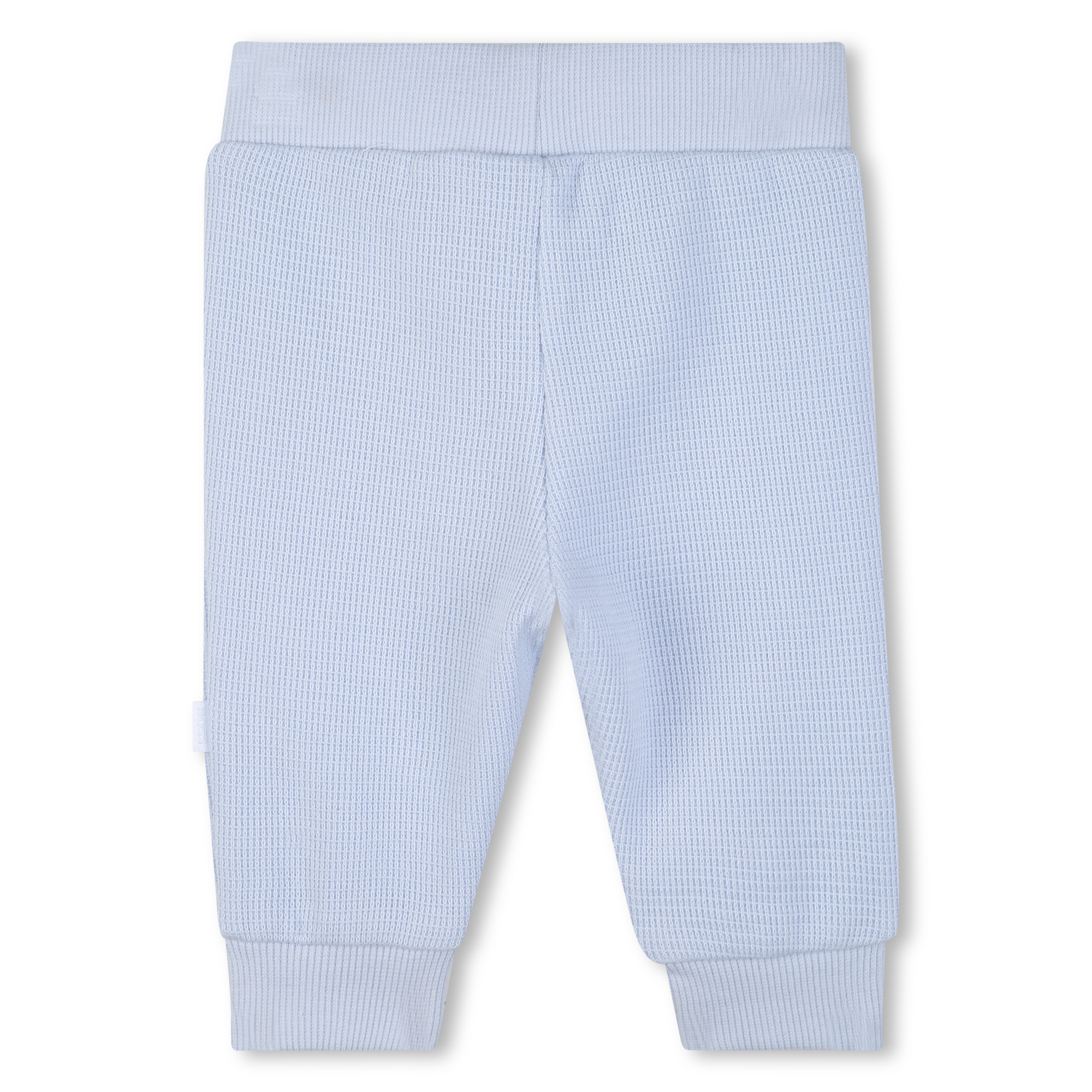 3-piece set: White T-shirt with blue print, light blue elasticated waist trousers, and light blue long-sleeved jacket with zip and hood.