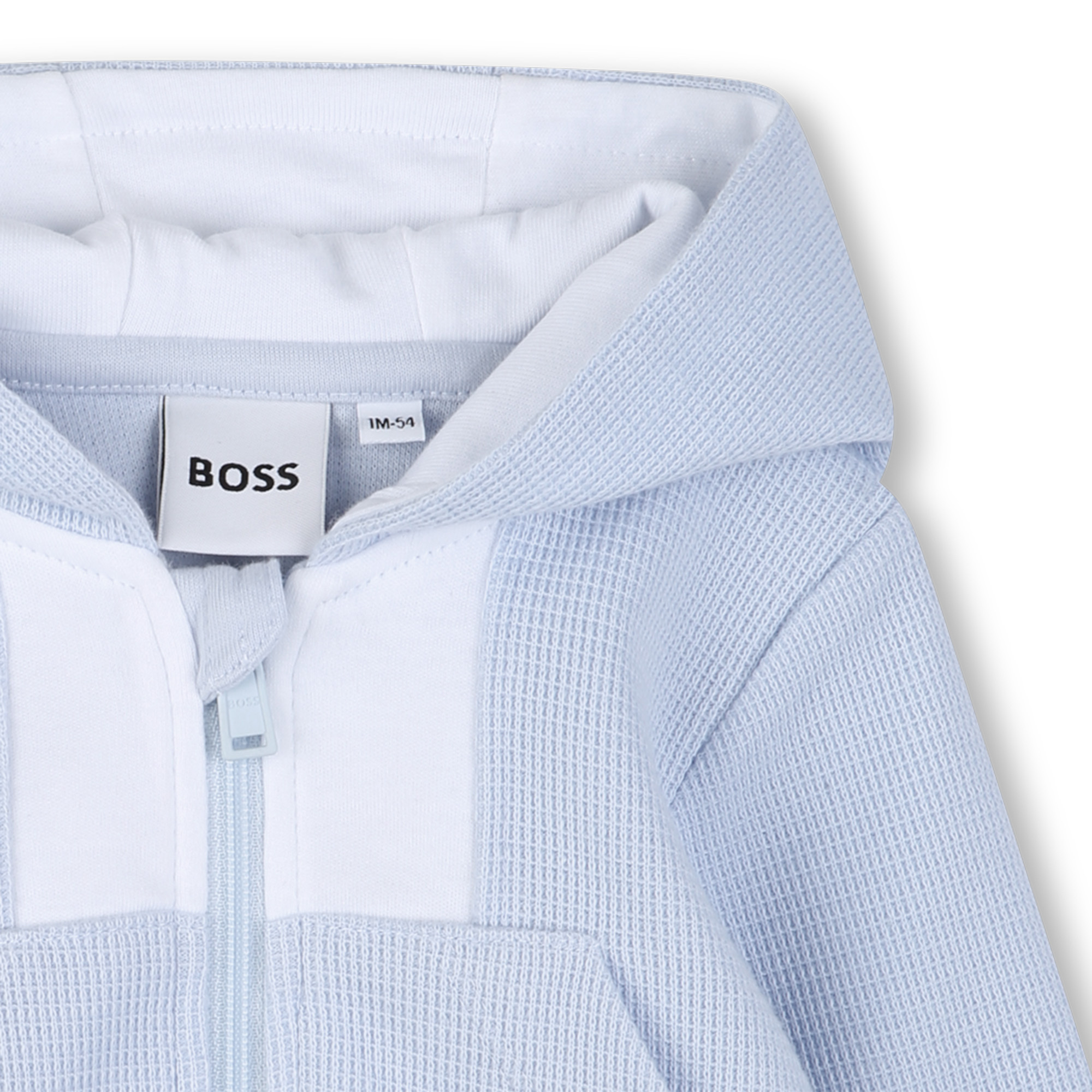 2-piece set: Light blue T-shirt with white Boss print and blue and white striped shorts with elasticated waistband.