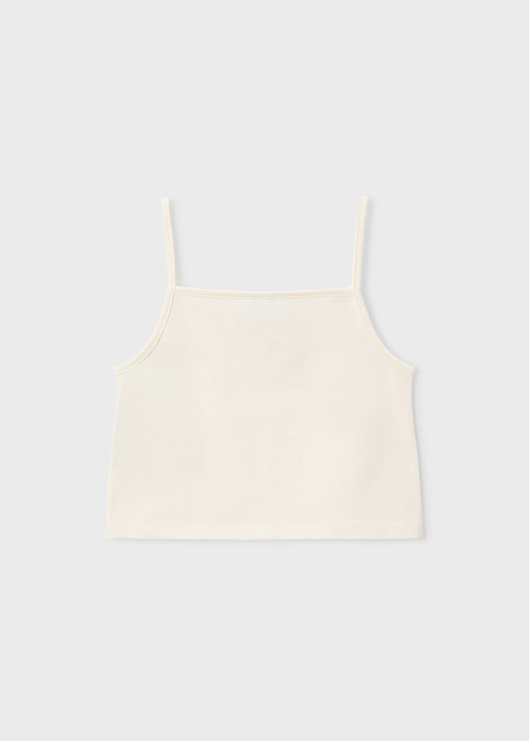 • Cream-colored two-piece top set including a camisole and a crocheted top.