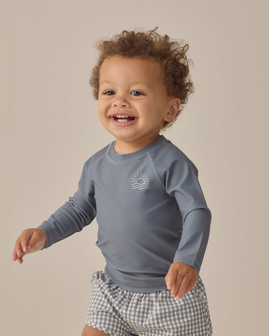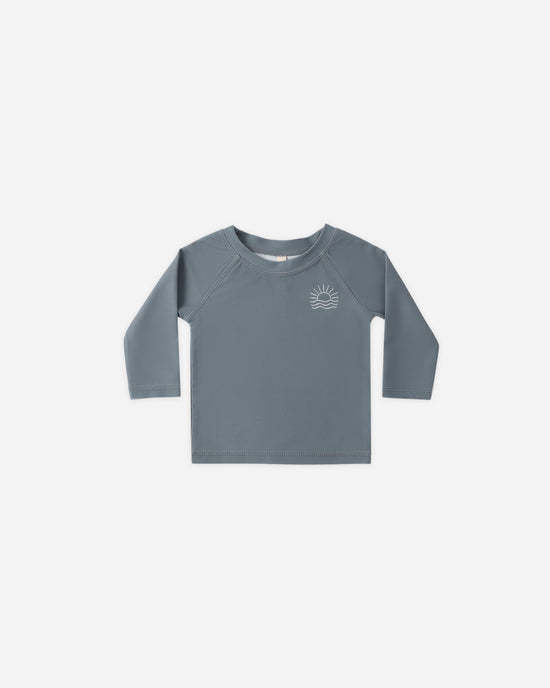 • Long-sleeve rashguard made from a soft, stretchy fabric.