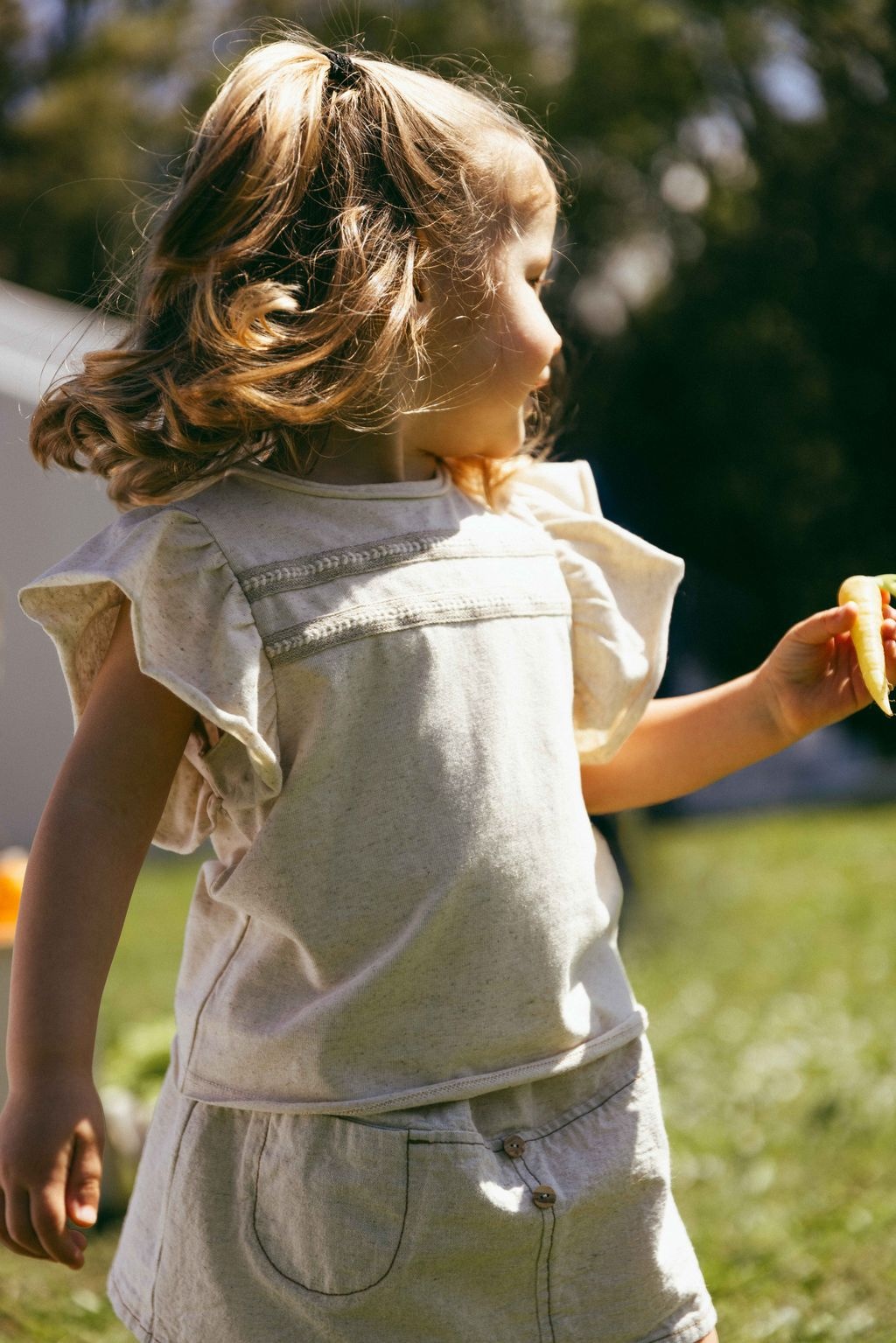 • Linen-colored short-sleeved top.