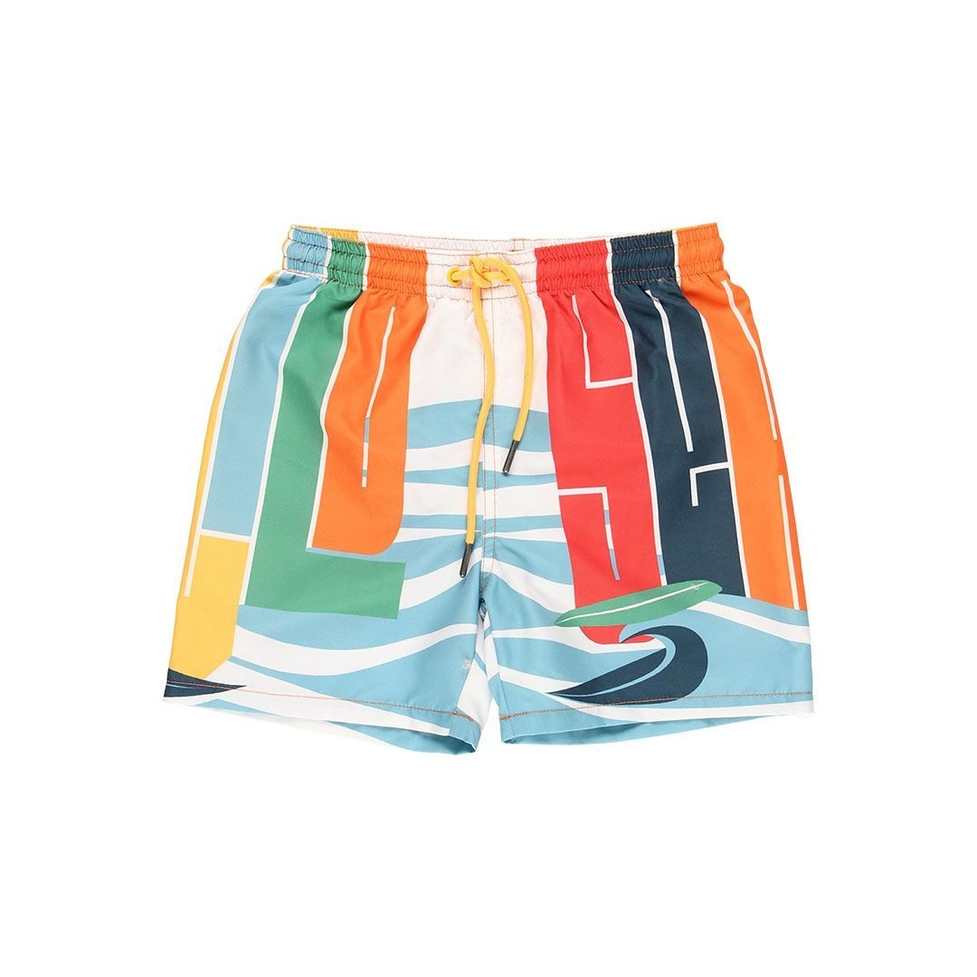 • Swimsuit shorts made from recycled bottles with mesh panties.