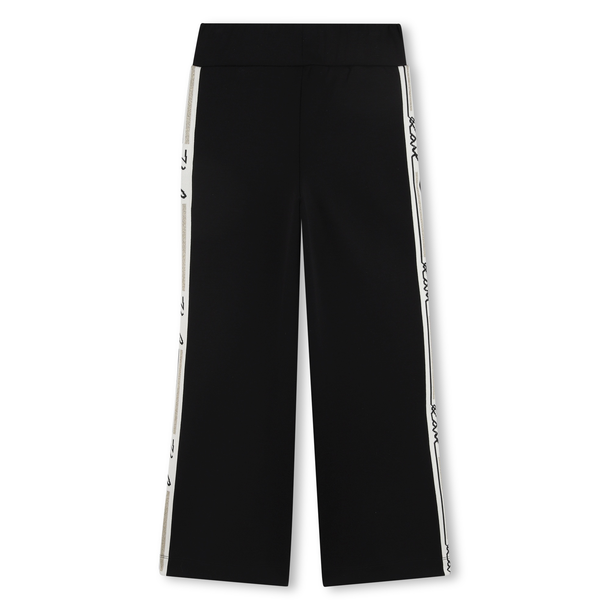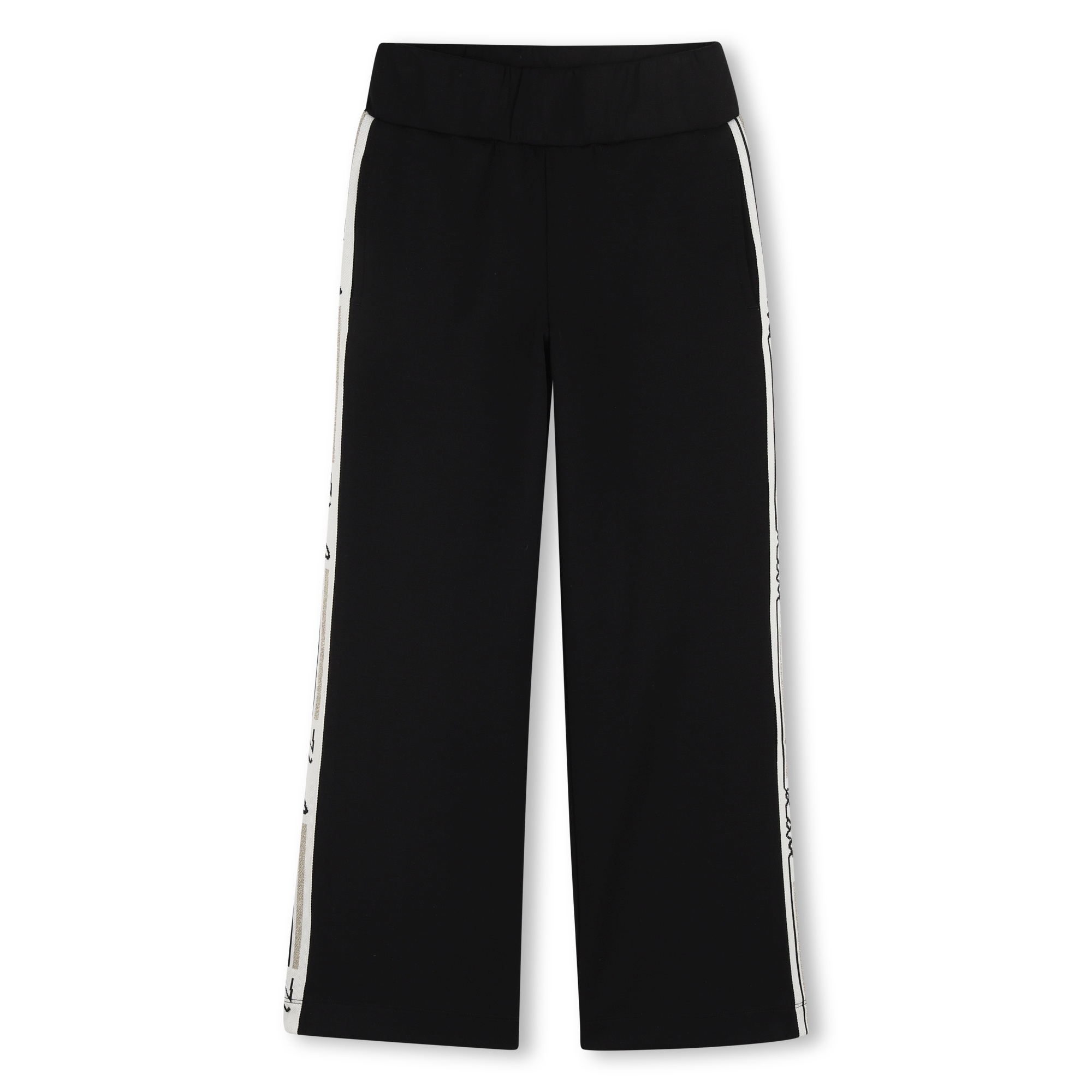 • Black pants with white and gold details along the leg. Elasticated waist.
