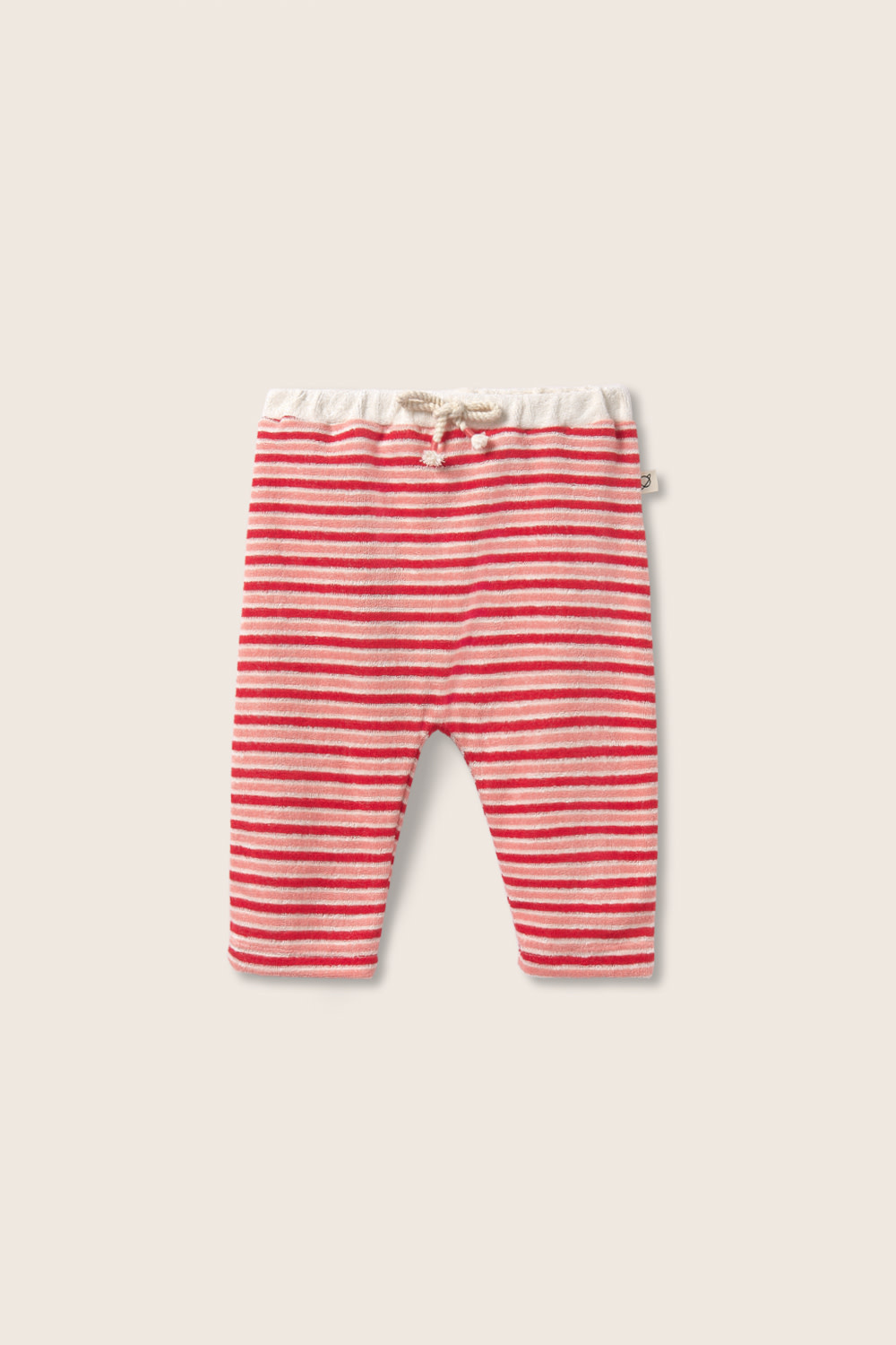 • Striped pants with elastic waistband.