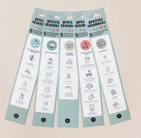• Place them in strategic locations so that your little one can perform each step of her routine efficiently.