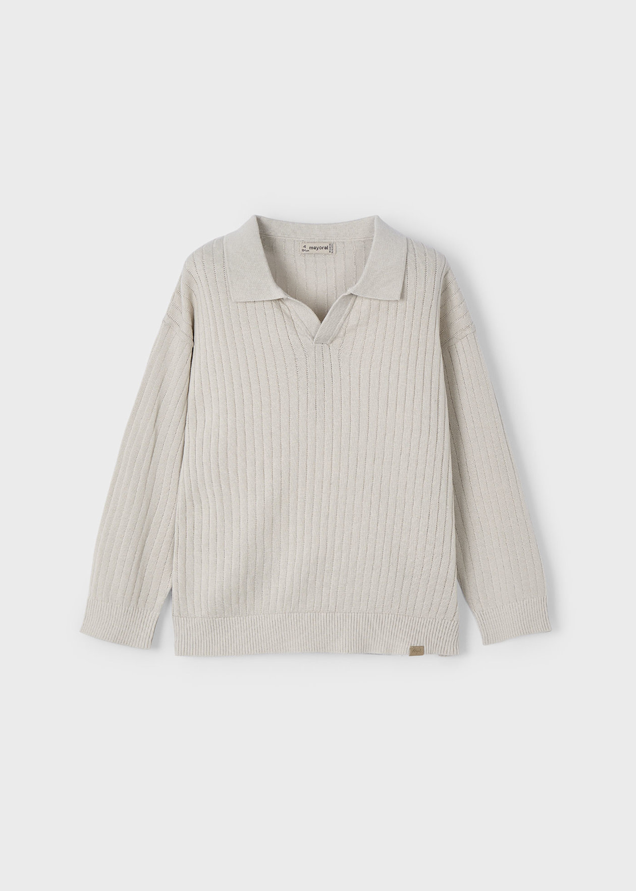 • Long-sleeved cream polo shirt.