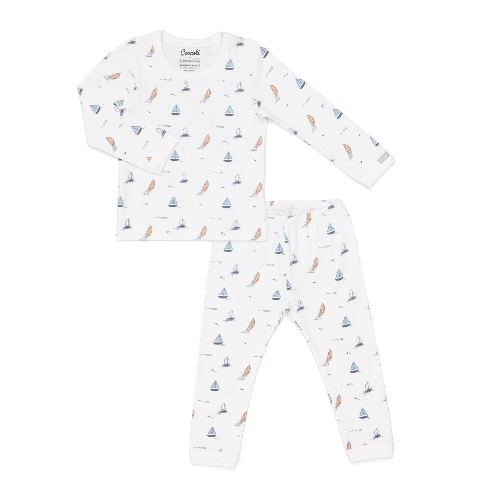 • White printed two-piece pyjamas including a long-sleeved top and pants.