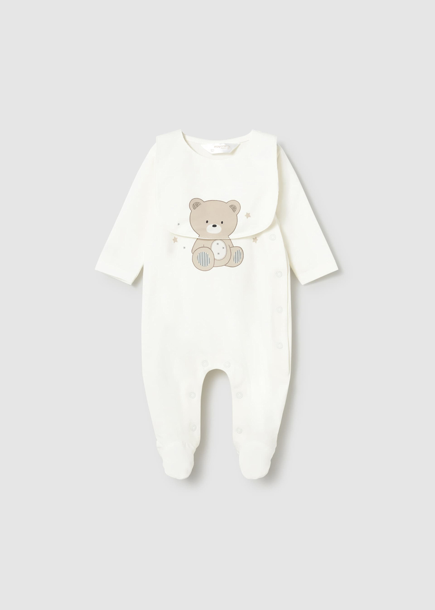 • Ecru-colored pyjamas with matching bib.
