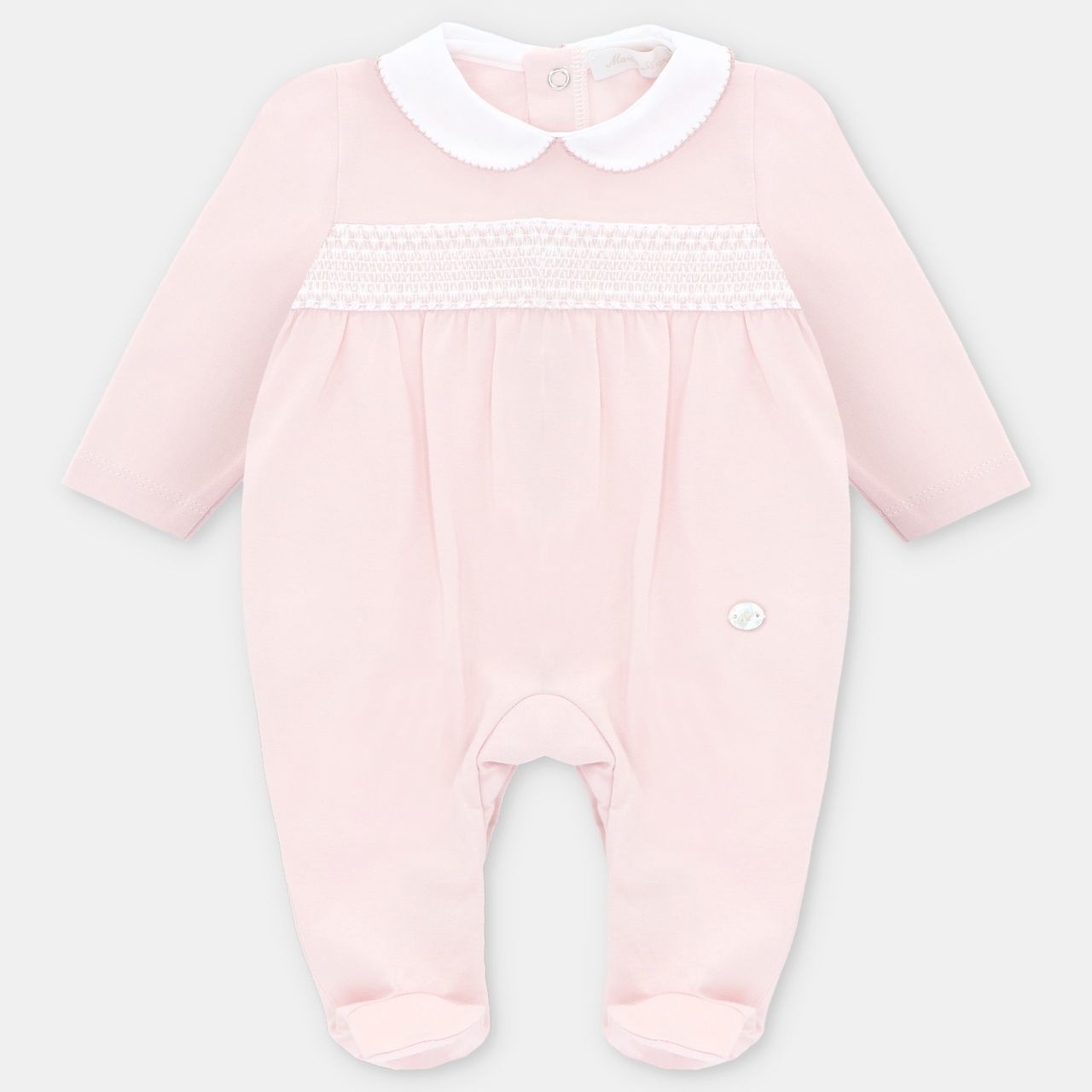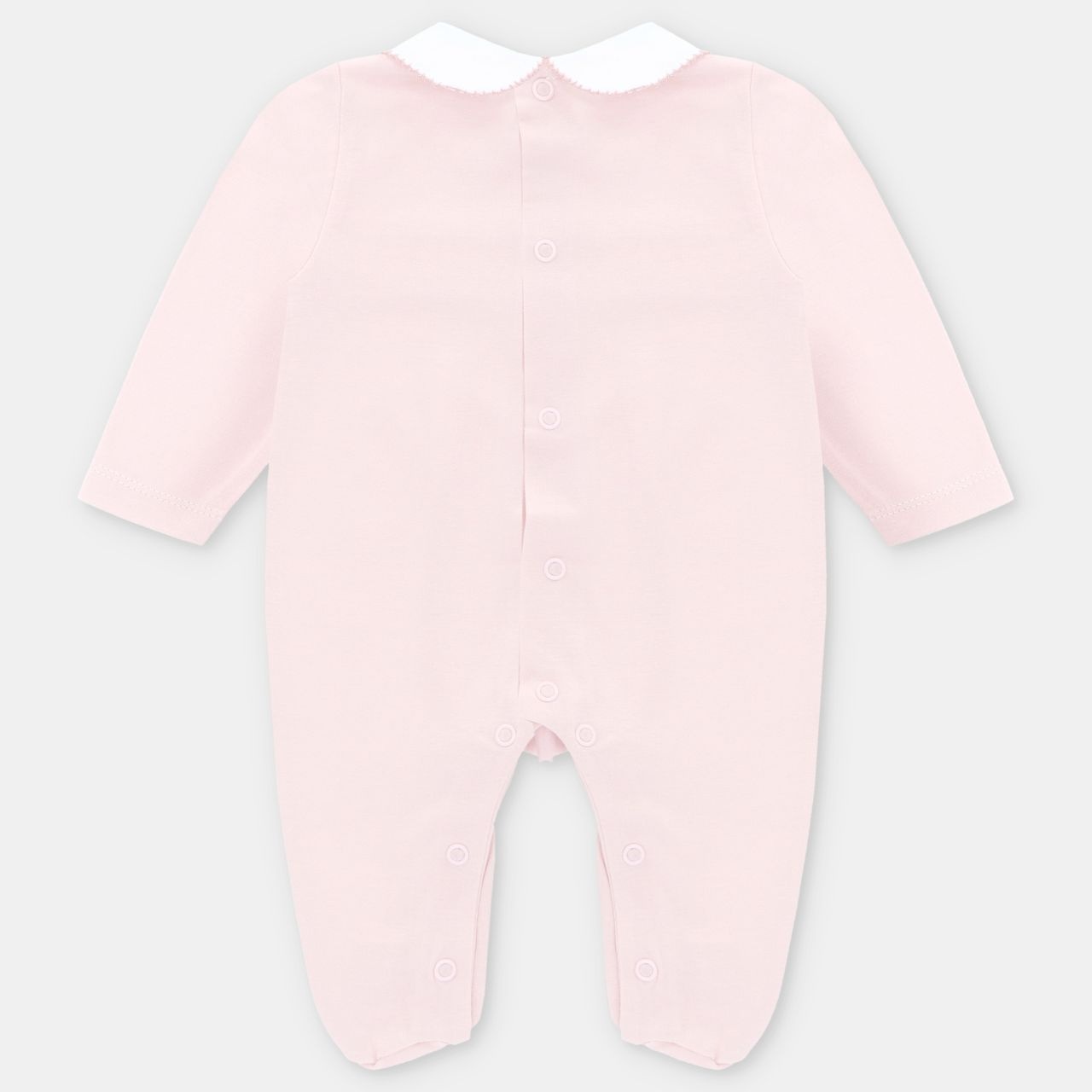 • Pink pyjamas with snap fasteners at the back and crotch.