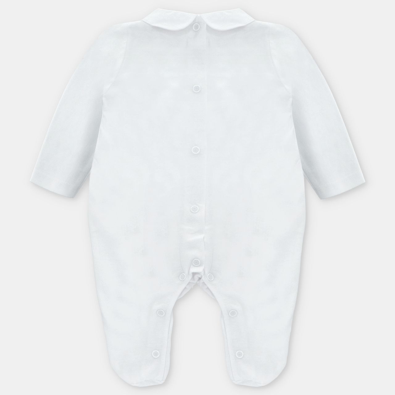 • White pyjamas with press studs at the back and crotch.