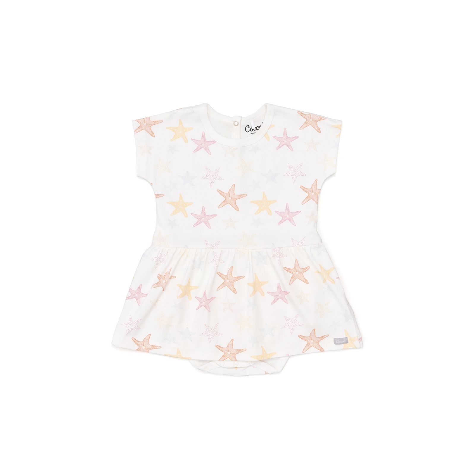 • White-colored printed dress with built-in panty.