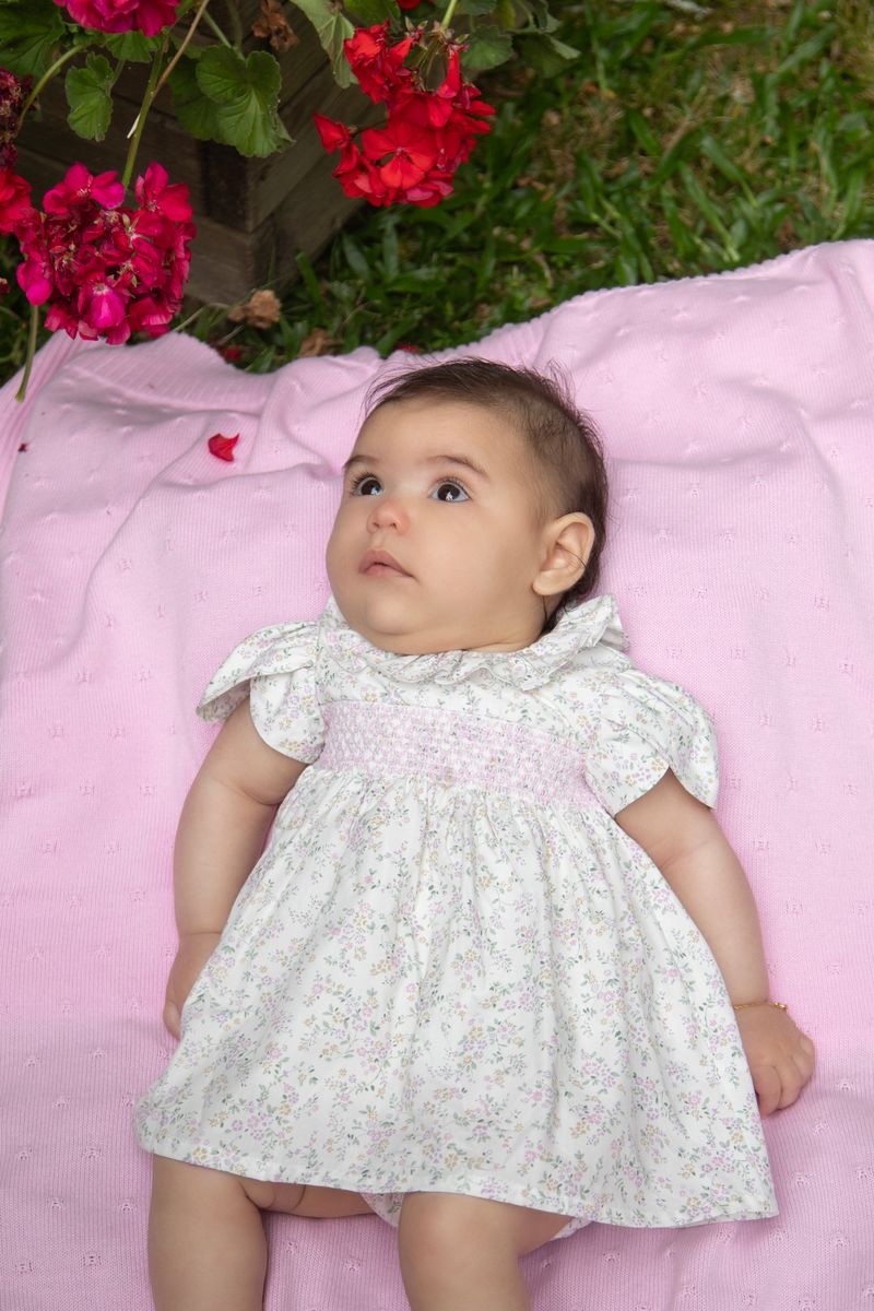 • Floral short-sleeved dress with matching panty.