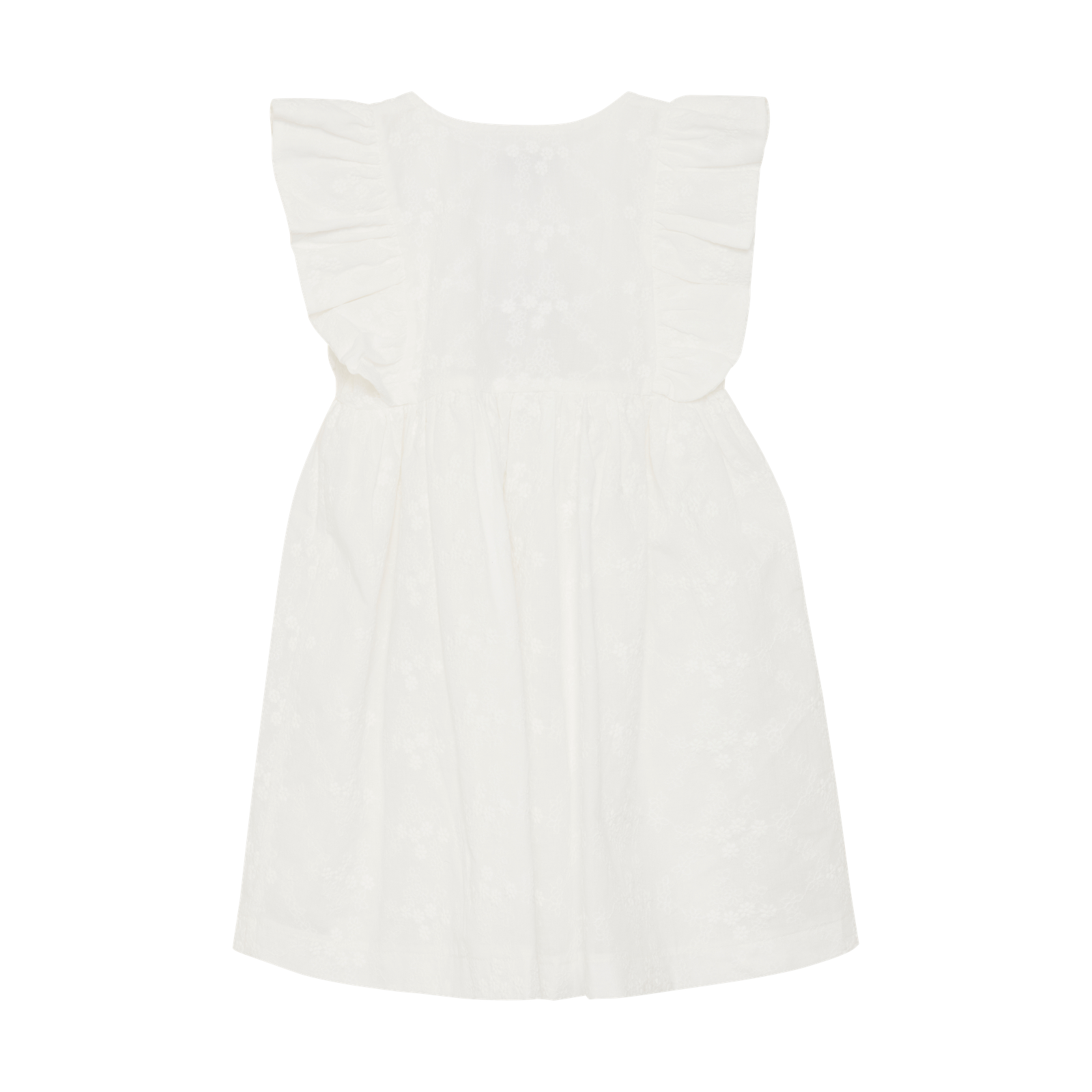 • Embroidered dress with short ruffled sleeves.