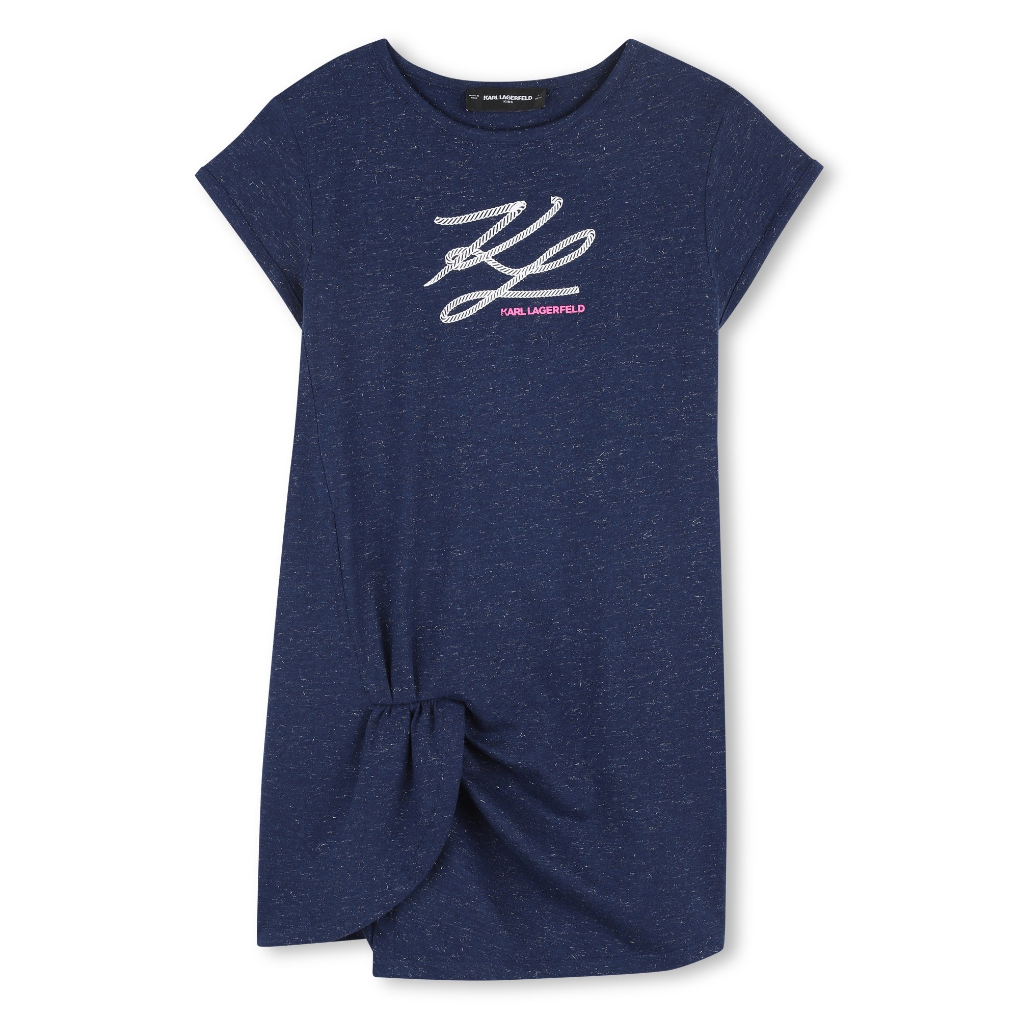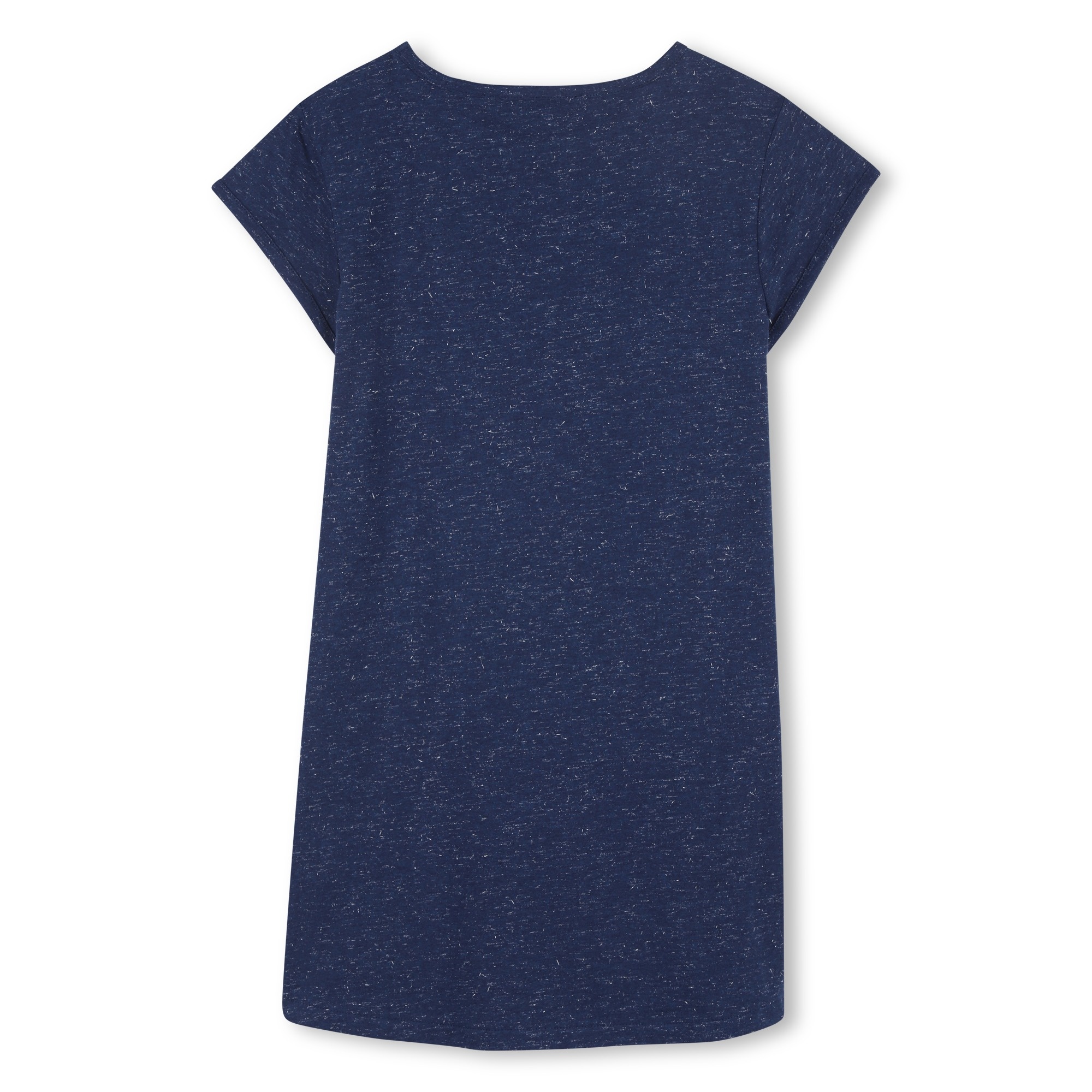 Black and white sleeveless dress with a small integrated tie. Zipper closure at the back.