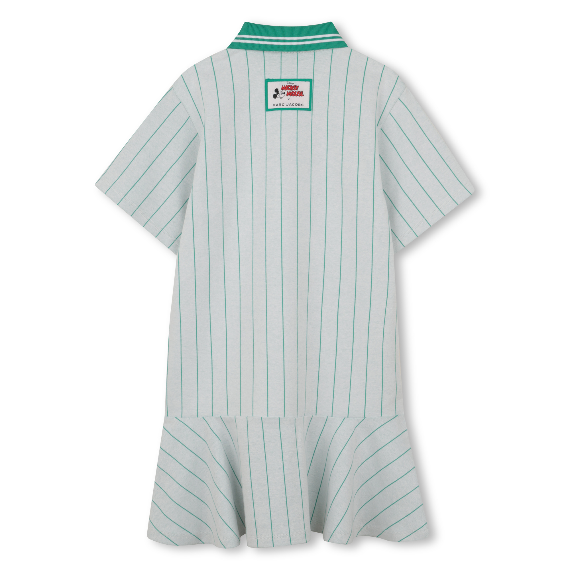 • Blue and green striped polo-style dress with a Mickey Mouse fanny pack print.