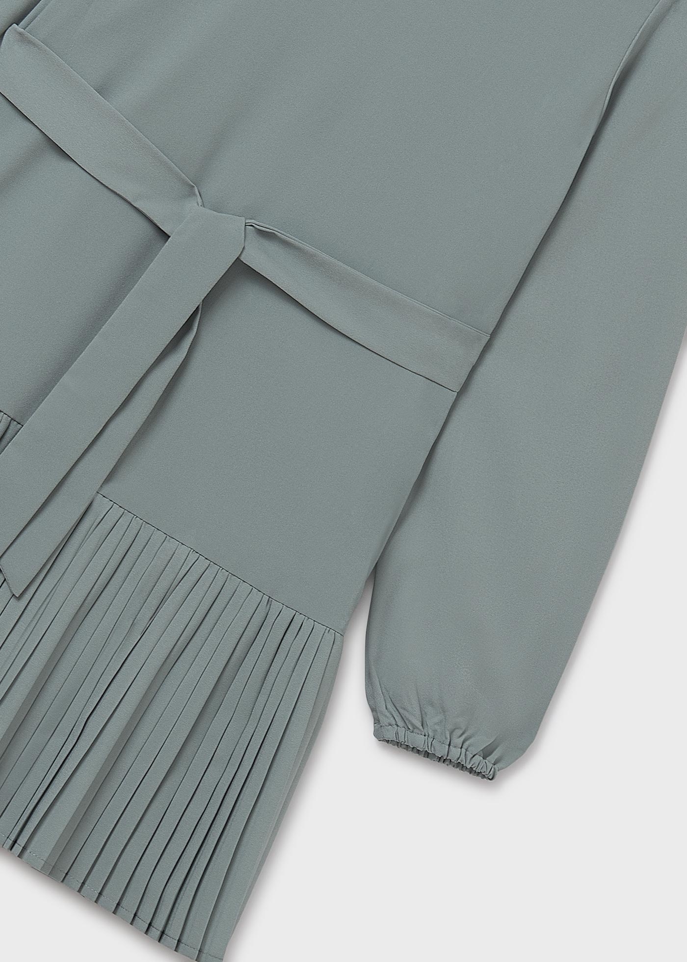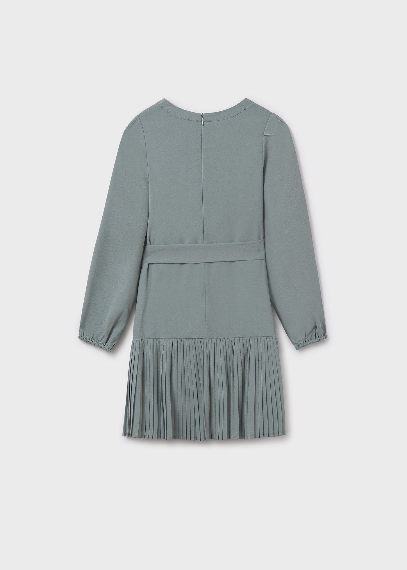 • Green long-sleeved dress with back zipper.