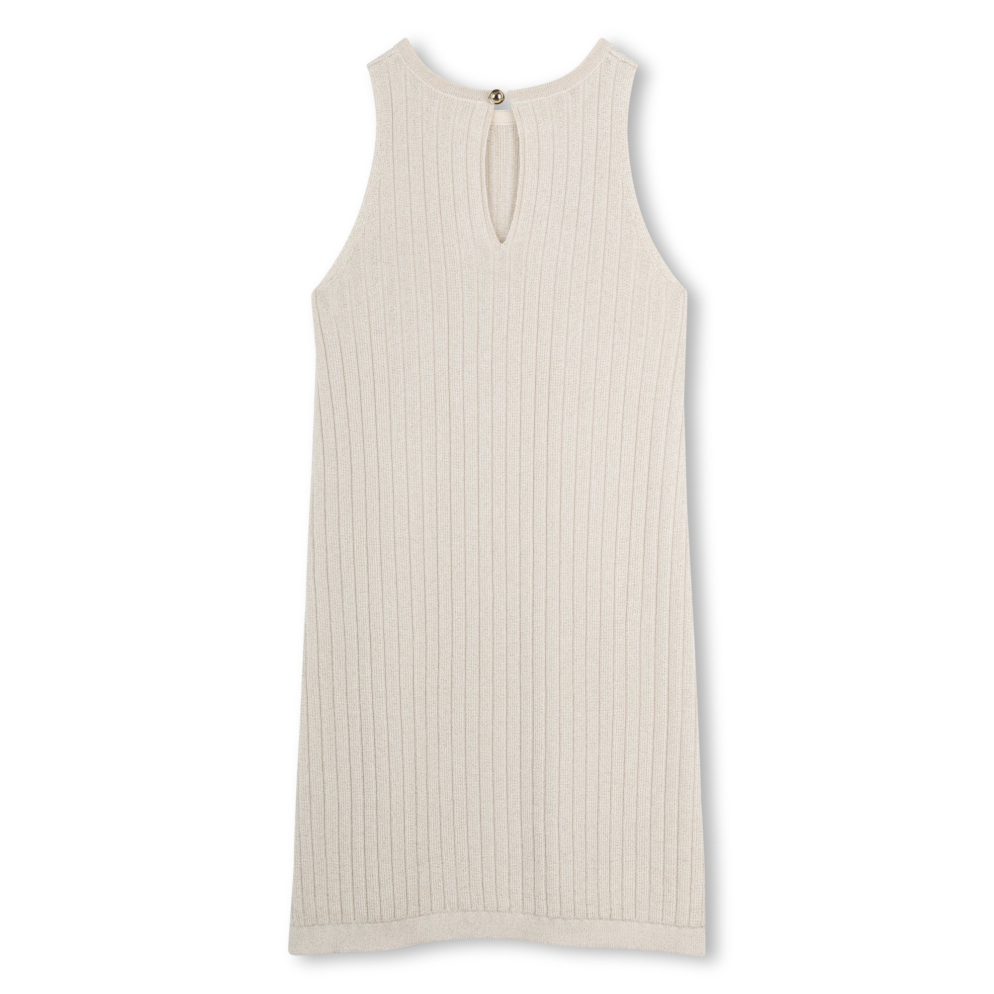 • Shiny champagne dress with a button fastening at the back.