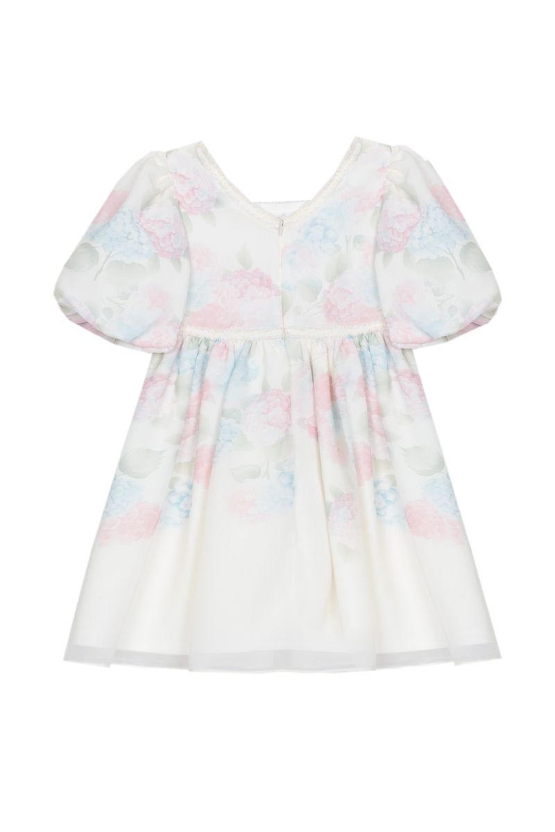 • Ivory printed dress with zipper closure at the back.