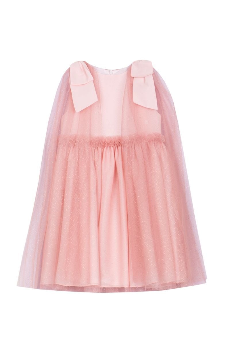 • Light pink dress with tulle and zipper closure at the back.