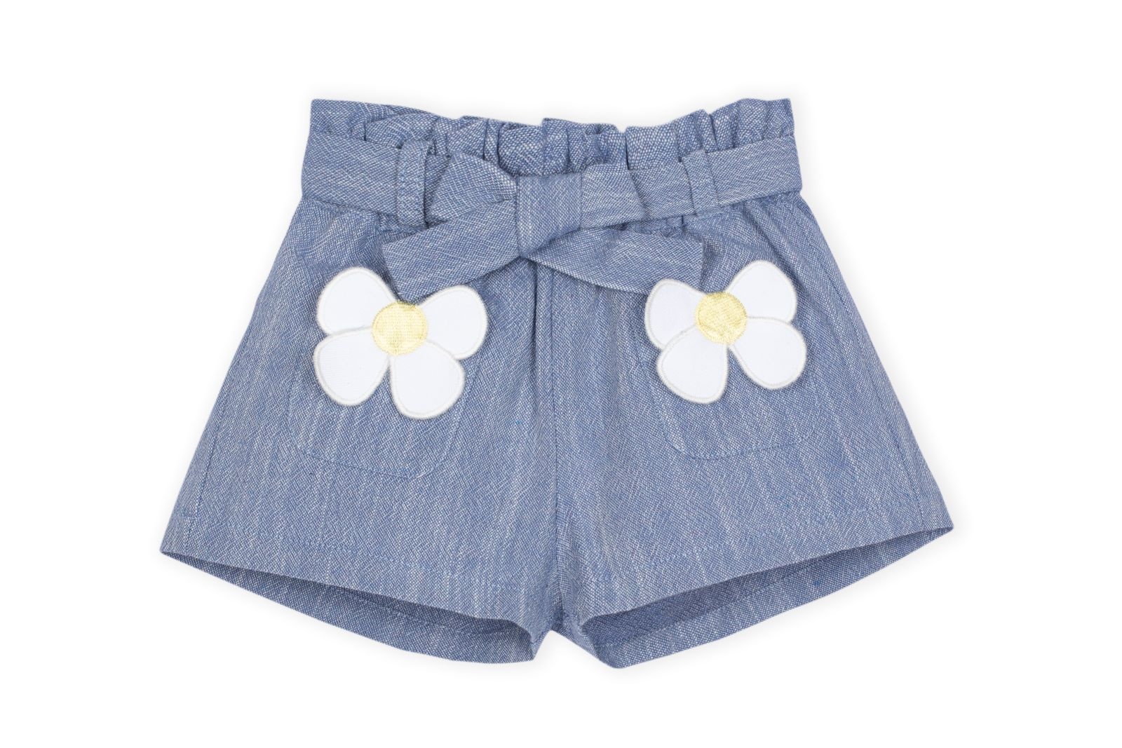 • Blue shorts with elastic waistband.