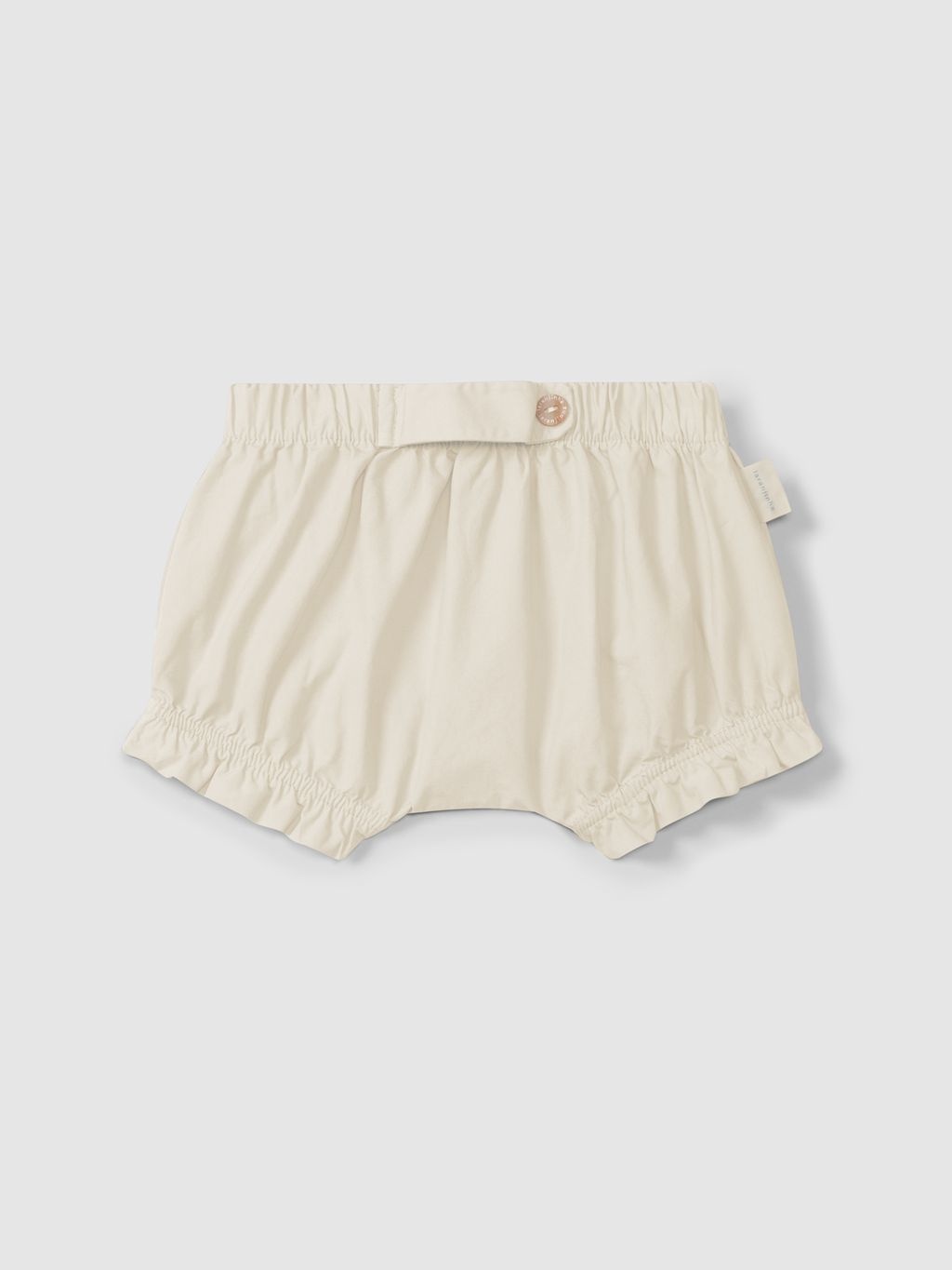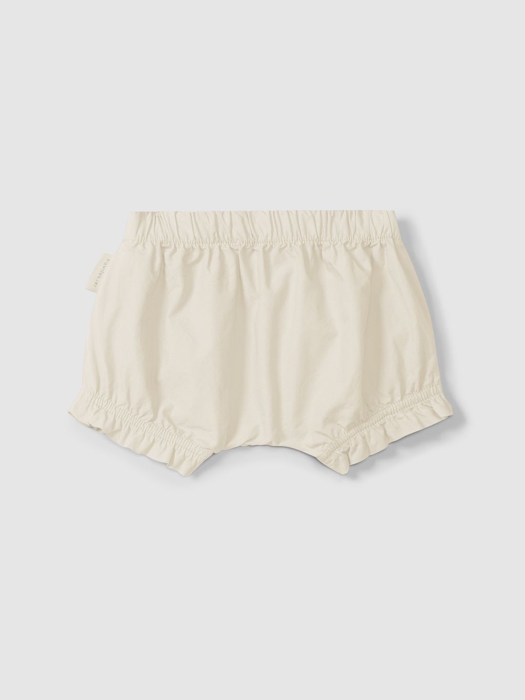 • Cream-colored shorts.
