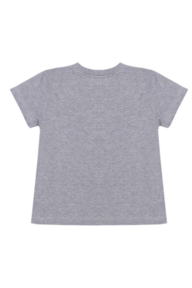 • Grey printed t-shirt with snap buttons at the shoulder.