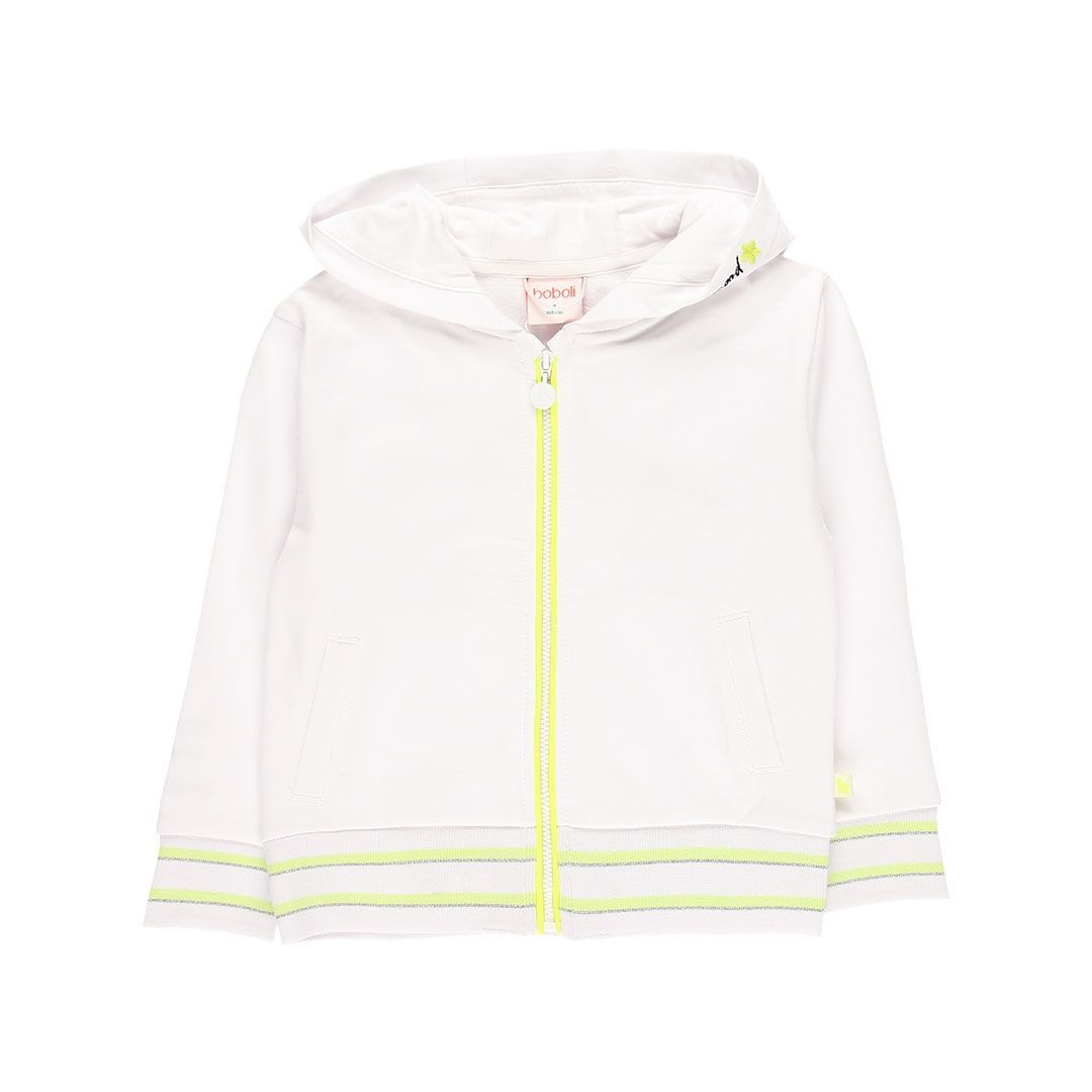 • White vest with hood and zipper.