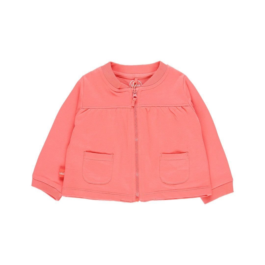 • Pink hooded vest with zipper.